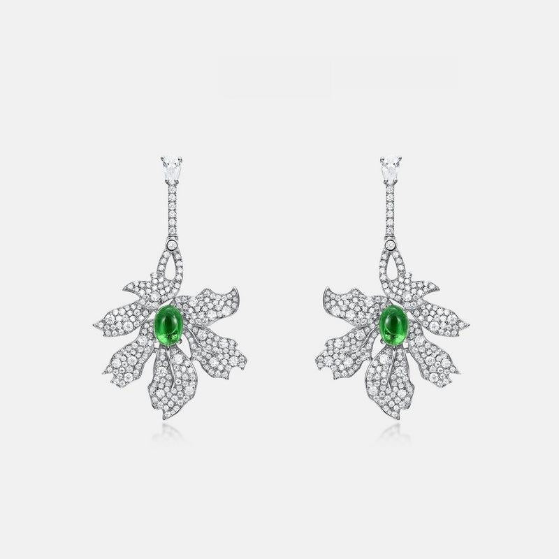 Green Leaf Earrings S925 Silver Full Inlaid White Zirconium Long Earrings