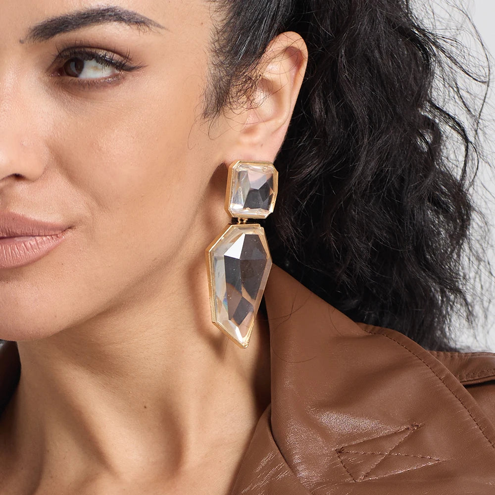 Women’s Geometric Resin Stone Dangle Earrings – Irregular Crystal Pendant Statement Jewelry
