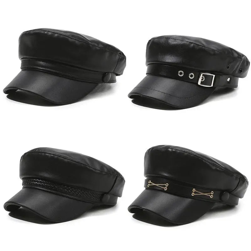 Classic British Visor Beret – PU Leather Casual Hat