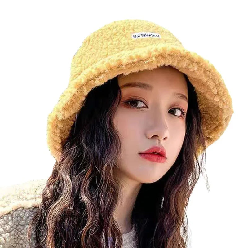 Women’s Winter Plush Bucket Hat – Warm Adjustable Windproof Fisherman Cap