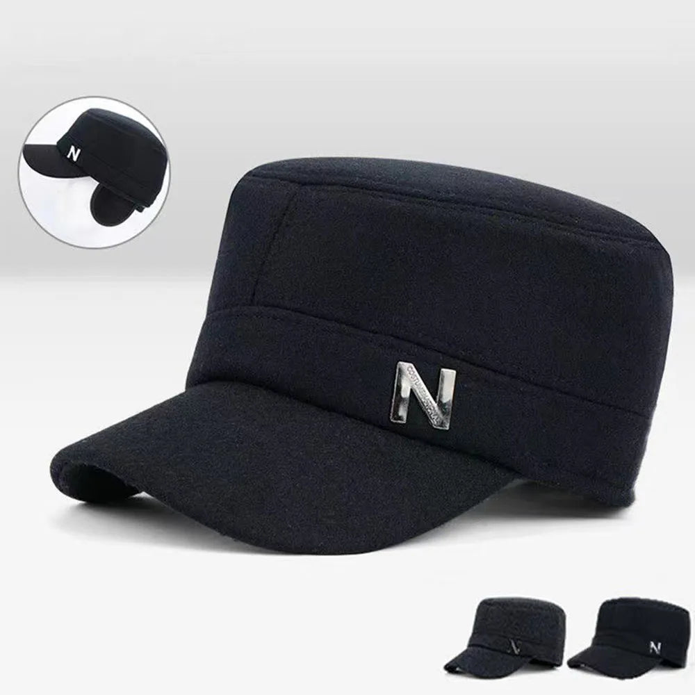 Men’s Warm Wool Flat Cap – Winter Fleece Hat with Ear Protection