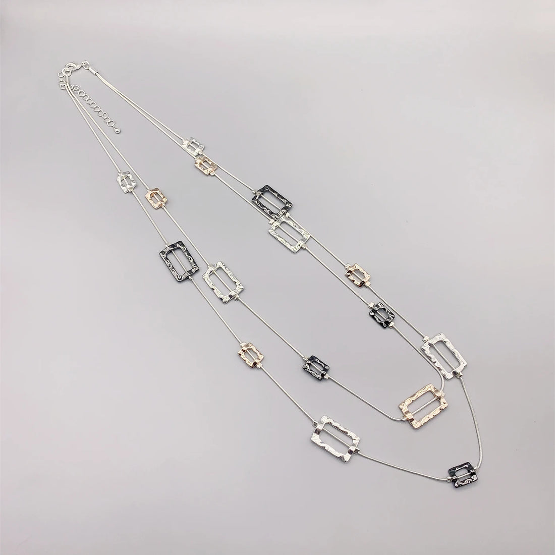 FoLisaUnique 2 Strands Vintage Silver Pewter Rose Gold Plated Square Beads Layer Chain Necklace For Women