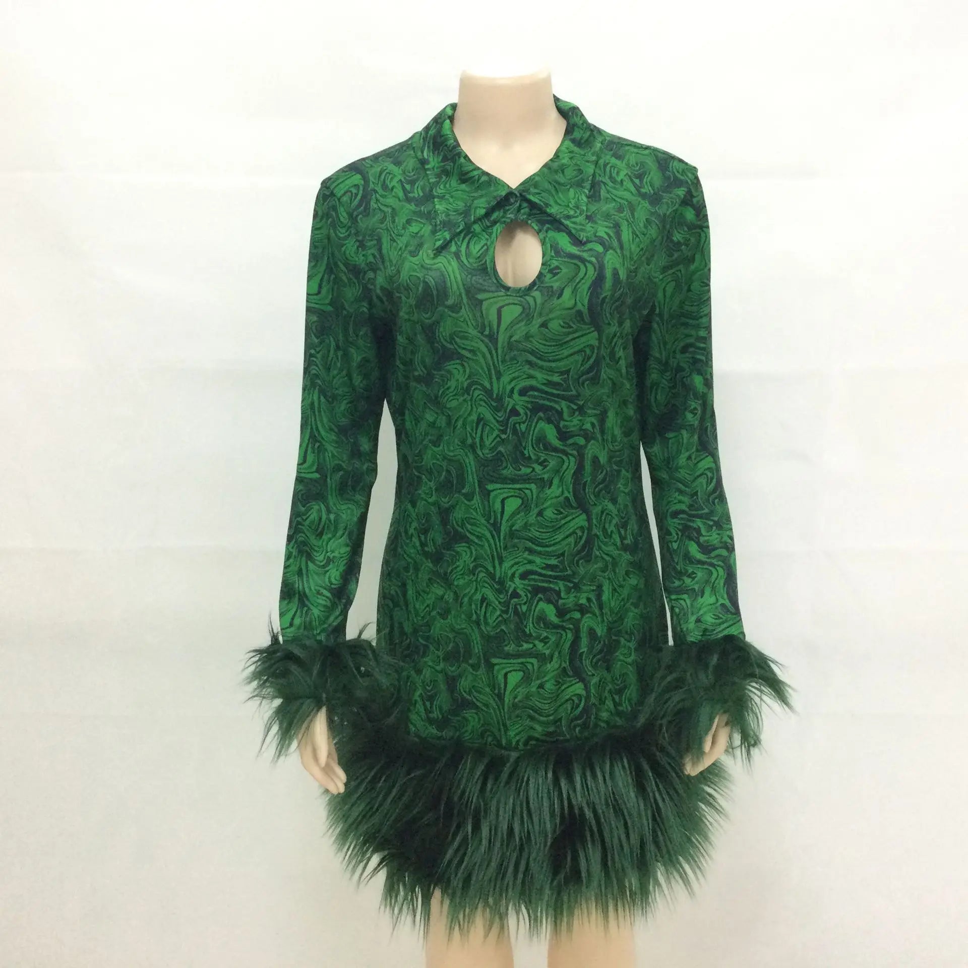 Plus Size Printed Slim Fit Dress – Elegant Long Sleeve