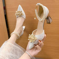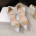 Women’s Pointed High Heels – Fashion Metal Beaded Pumps for Summer, Wedding & Banquet