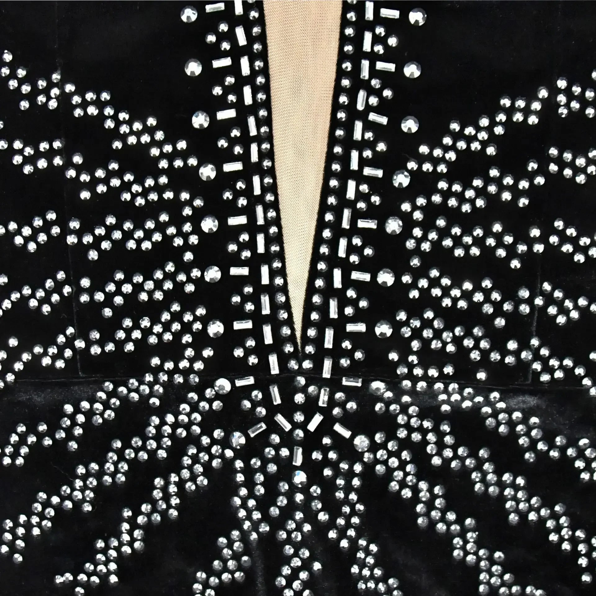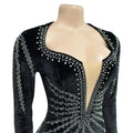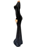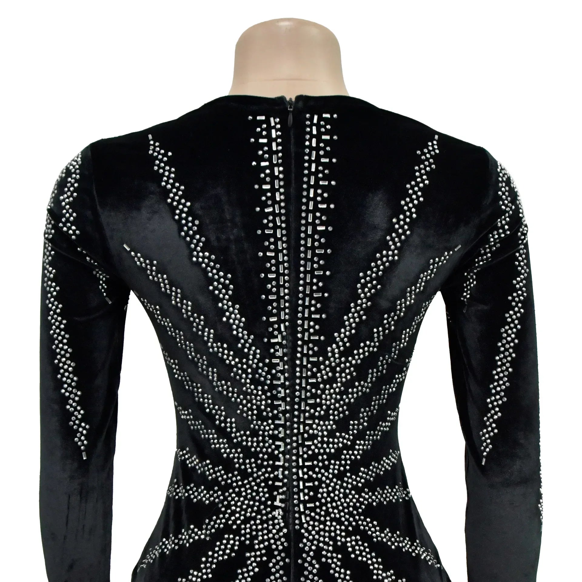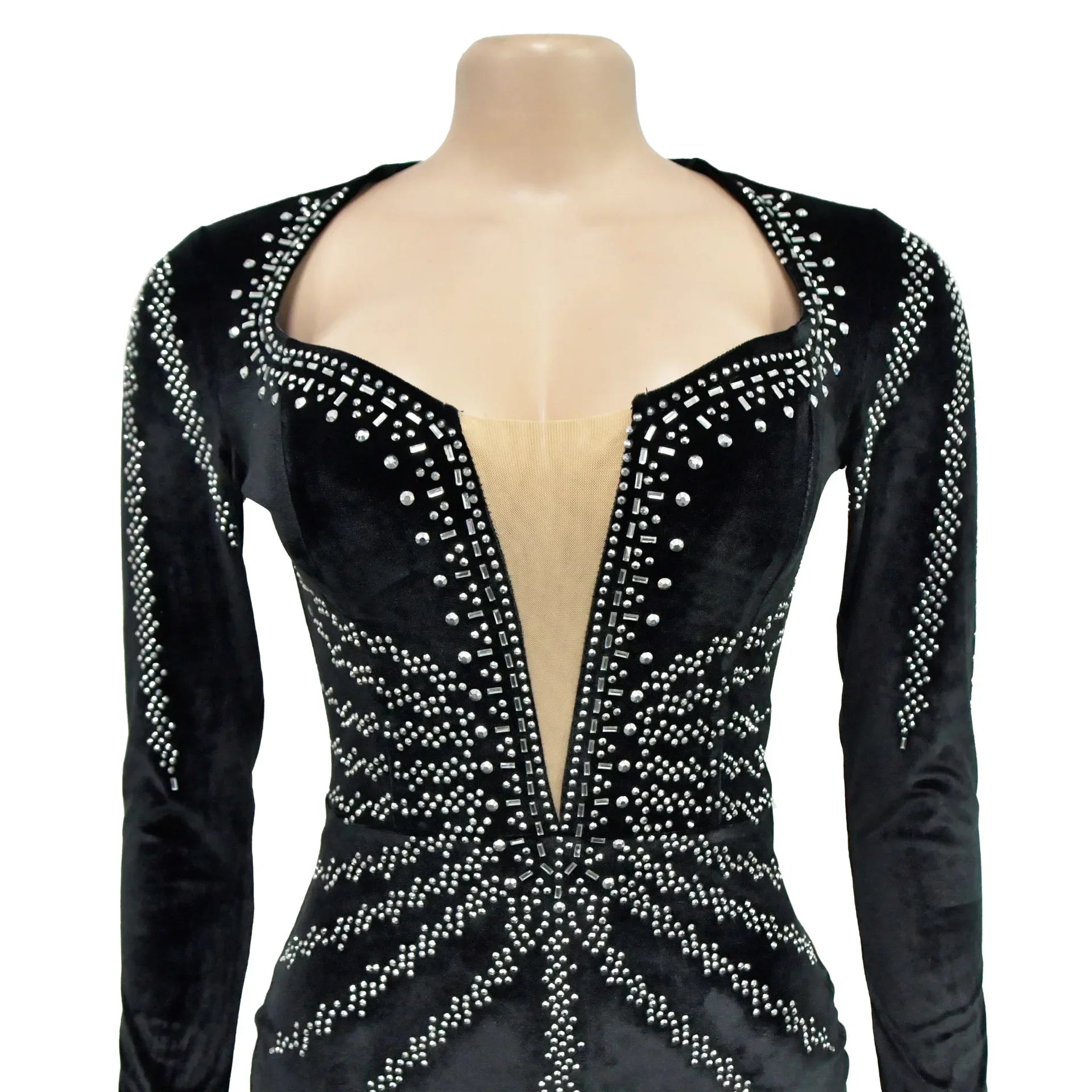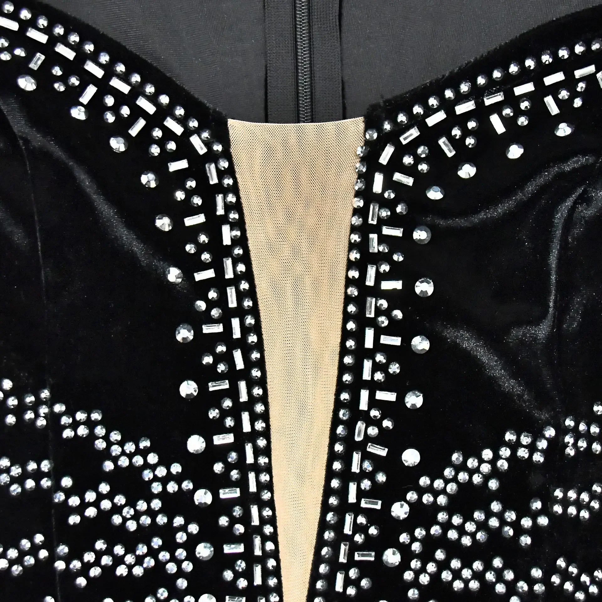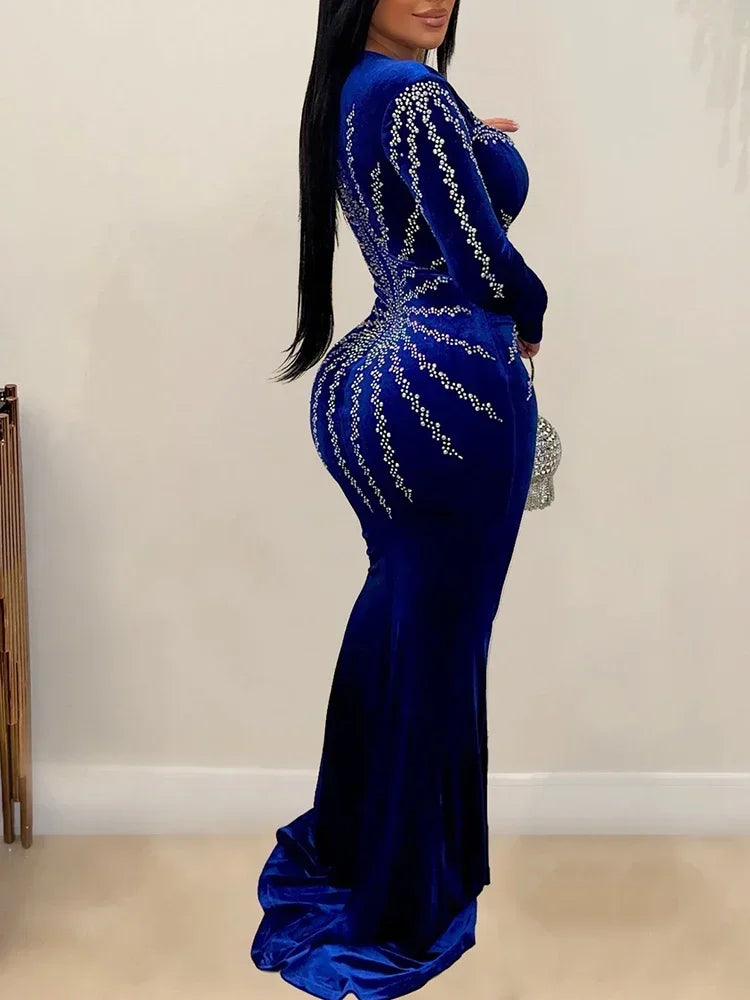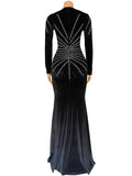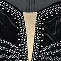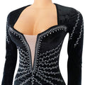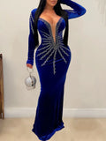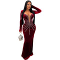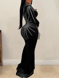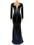 Women’s Elegant Velvet Party Dress – Sexy Deep V Long Evening Gown with Diamonds, Black Slim Formal Dress