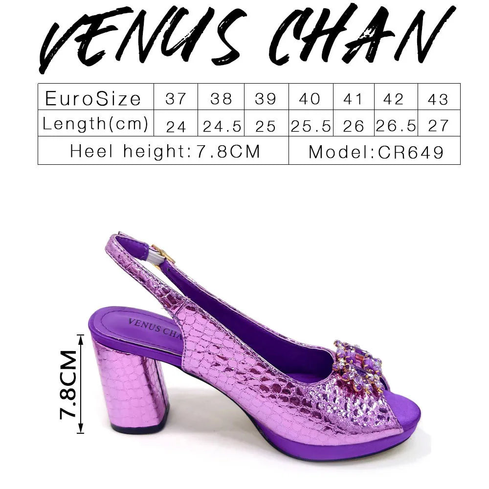 Women’s Open-Toe Purple Heels & Bag Set – Rhinestone Party Shoes, Plus Size Fashion Set