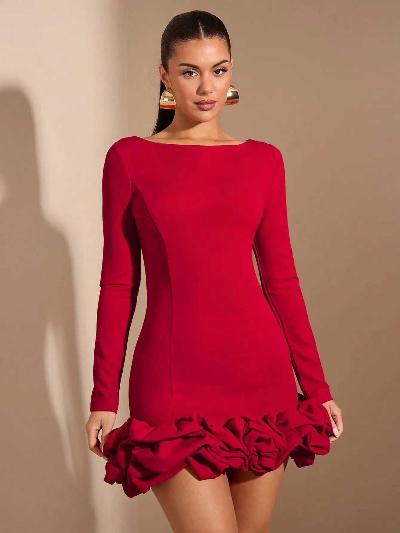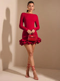 Autumn Winter Summer Clothing Dress Sweet Tutu Red Dress Elegant Long Sleeve Dress,Valentine's Day,Valentine Outfits For Women