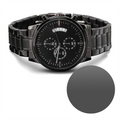 A personalized gift that can withstand constant use, this Engraved Design Black Chronograph Watch is the perfect gift for all the special men in your life. A thoughtful groomsmen gift, an anniversary memento, or a long-lasting keepsake for Father’s Day - it's a versatile piece sure to warm hearts and create smiles. Featuring a three-dial face, calendar function, and luxury pointer in a water-resistant and scratch-proof vessel.