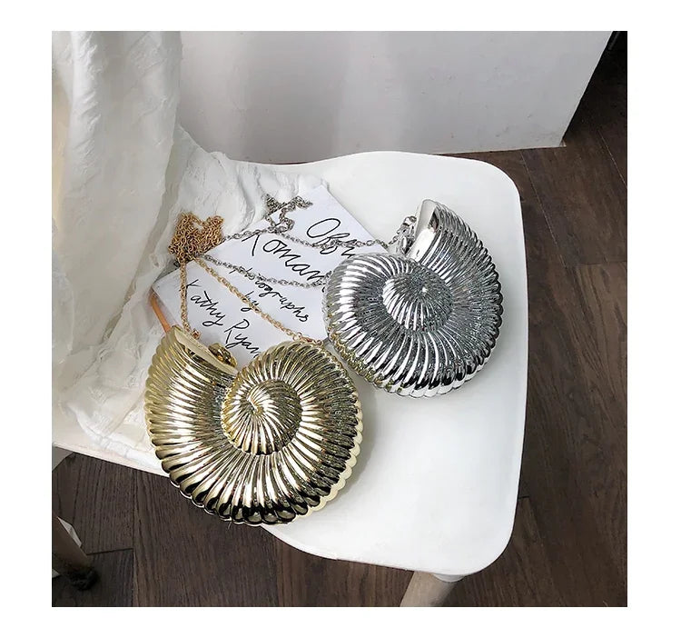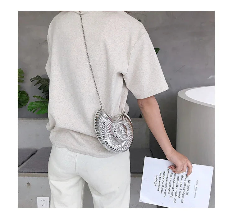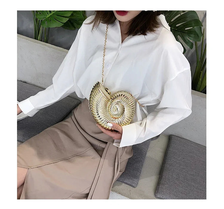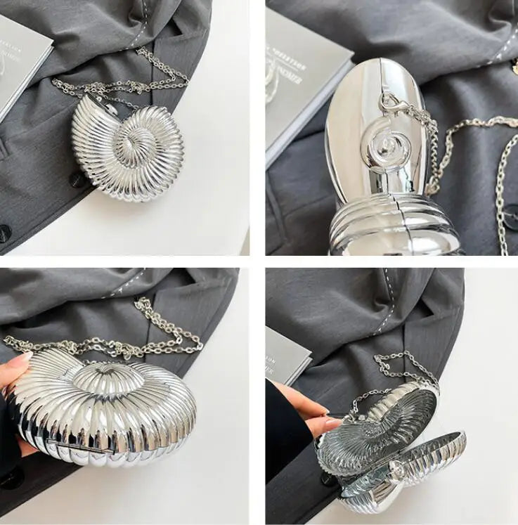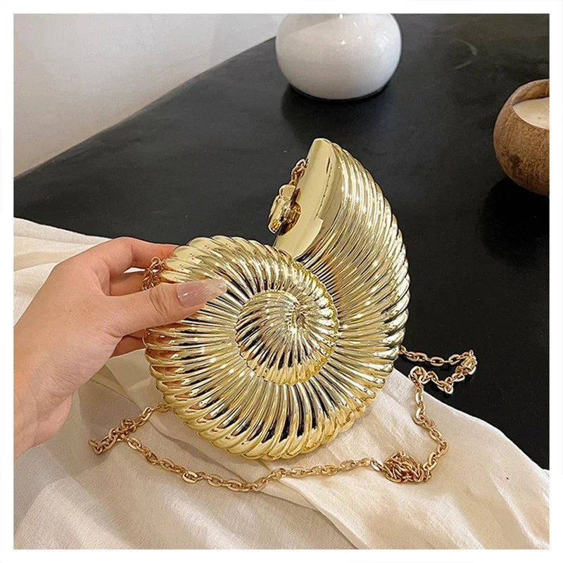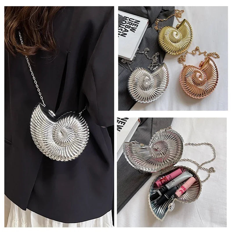 Conch Shell Acrylic Clutch – Women’s Crossbody, Shoulder & Messenger Bag with Metal Chain