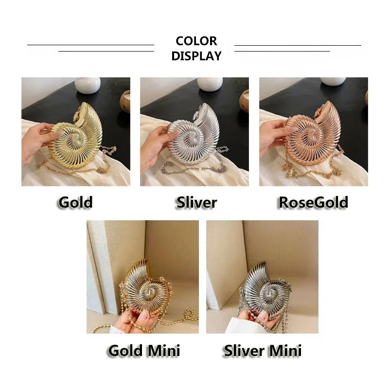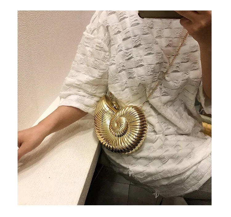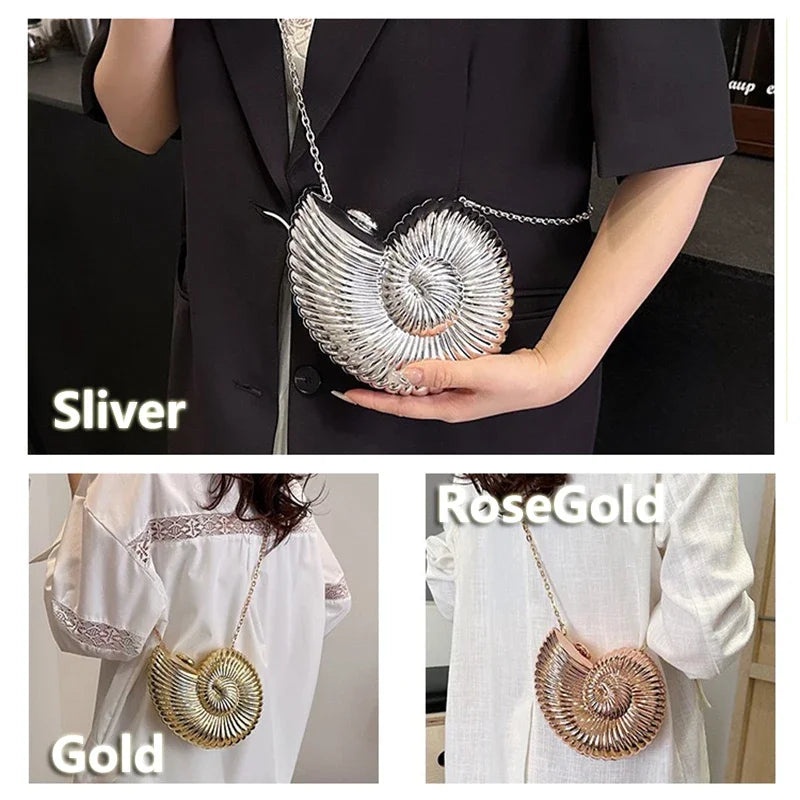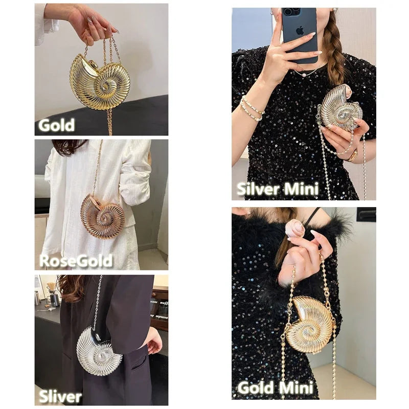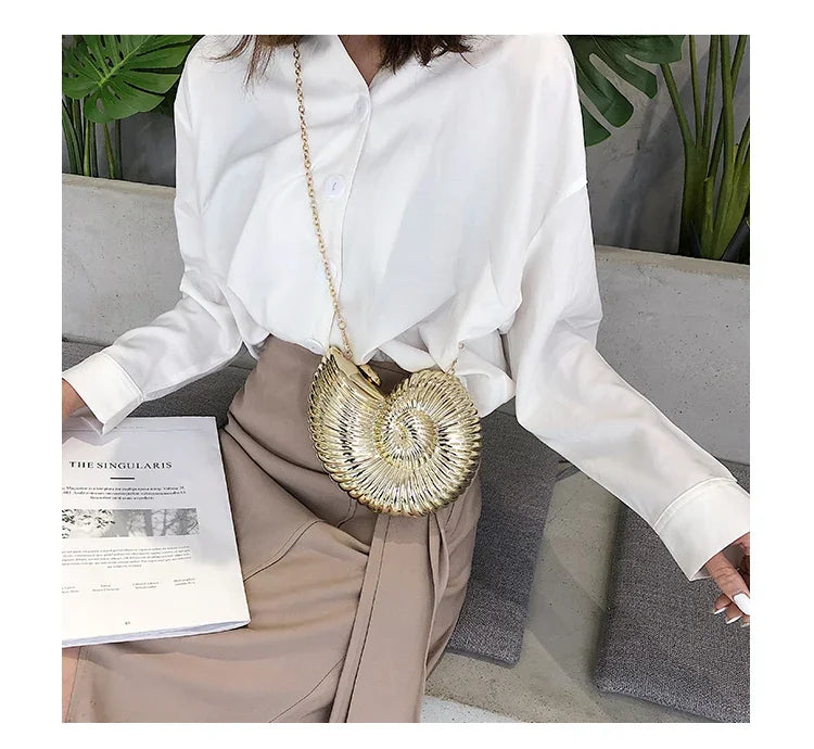 Conch Shell Acrylic Clutch – Women’s Crossbody, Shoulder & Messenger Bag with Metal Chain