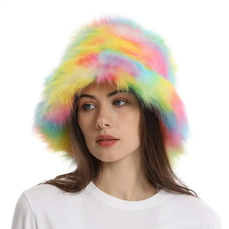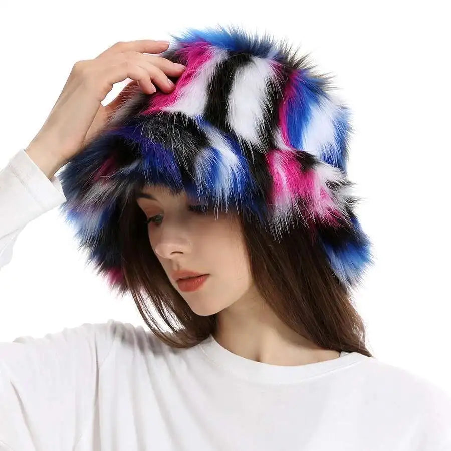Cozy Women’s Faux Fur Winter Hat – Warm Plush Fox Bucket for Ski & Outdoor