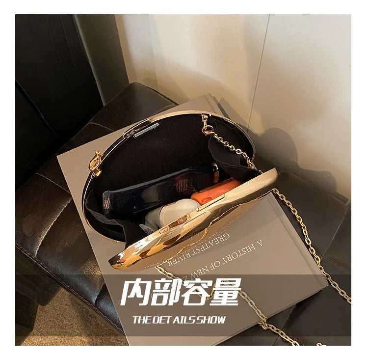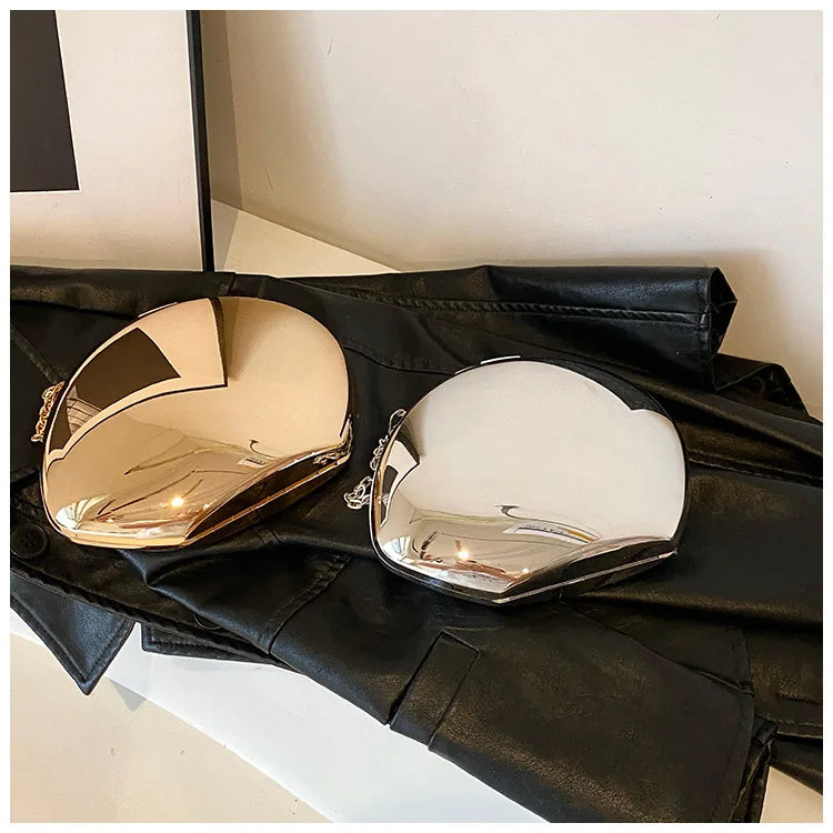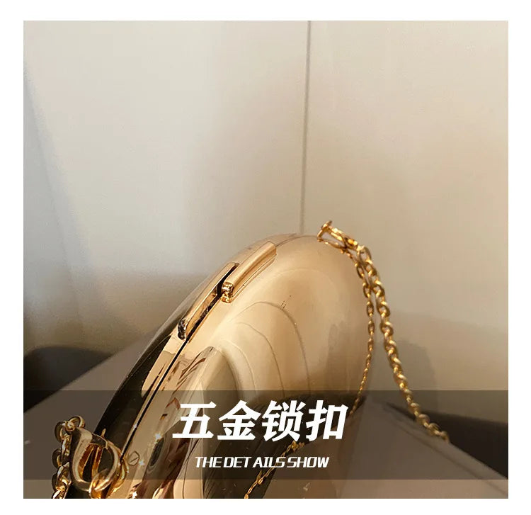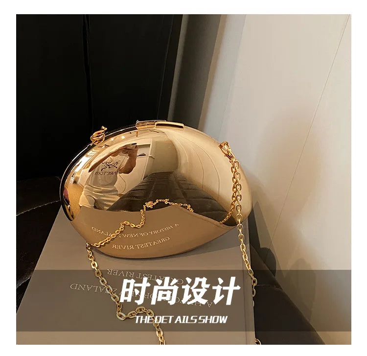Designer Acrylic Shell Clutch – Gold & Silver Women’s Evening Party Bag, Small Shoulder & Crossbody Purse