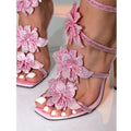 Eilyken Crystal Flower Ankle Strap Sandals – Women’s Sexy Open-Toe High Heels for Party