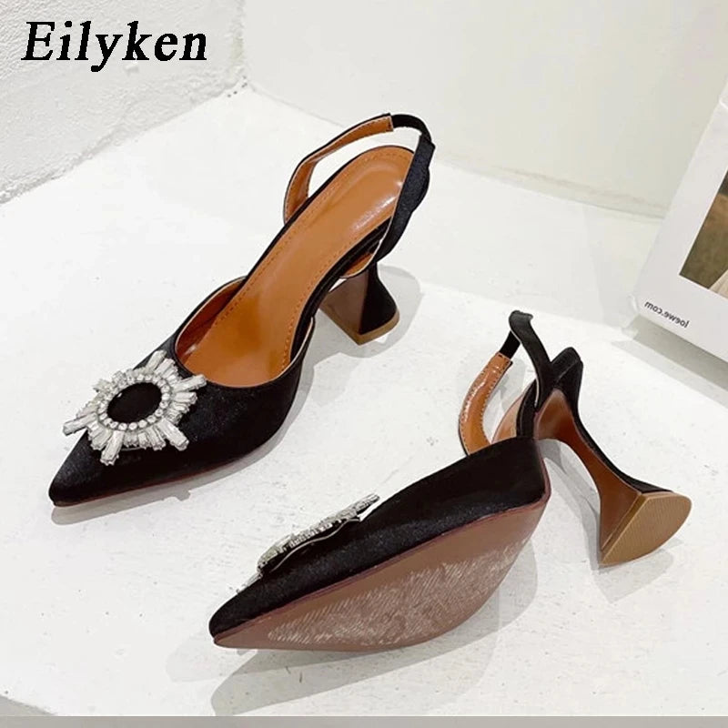Eilyken Silk Pumps – Crystal High Heels for Party & Wedding