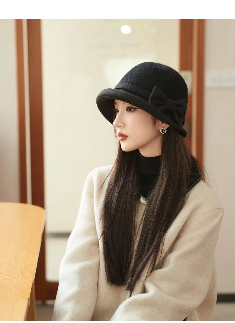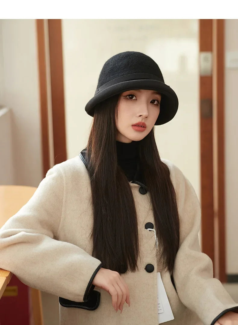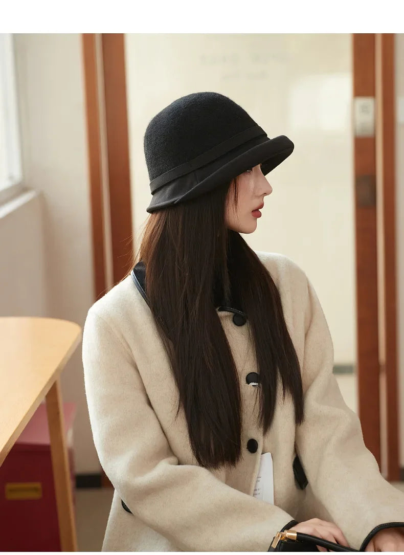 Elegant French Retro Wool Hat for Women – Hepburn Style Fisherman Cap 2025