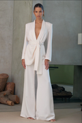 Step into effortless sophistication with this Elegant White Lace-Up Pantsuit – designed to turn heads while keeping you comfortable. Featuring a sleek deep V-neck blazer top with a belted waist for a flattering silhouette and wide-leg pants for graceful movement, this modern suit blends minimalism with confidence.