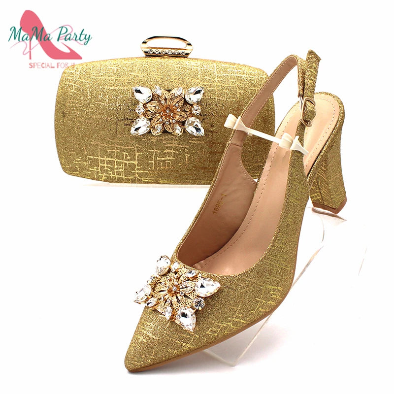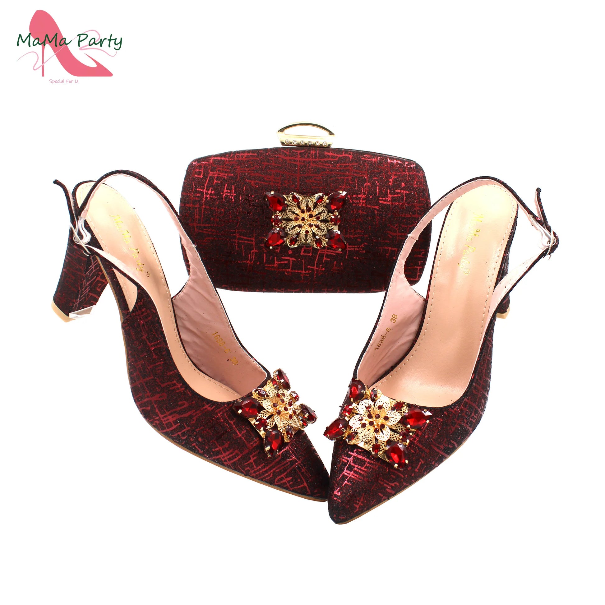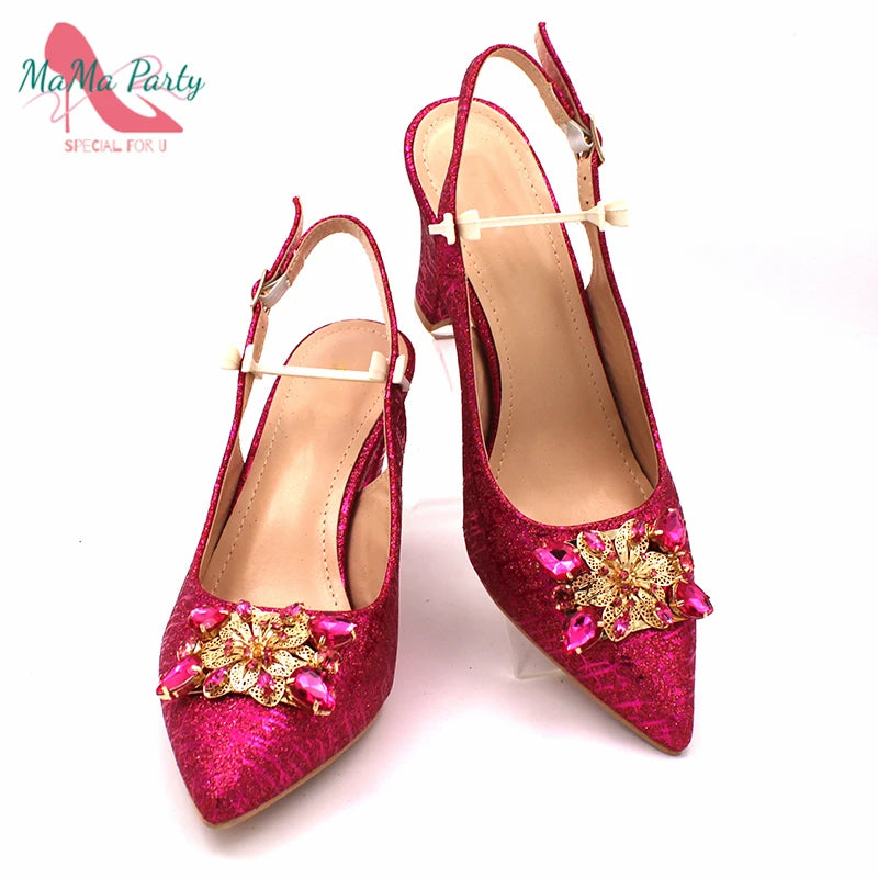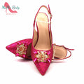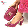 Fuchsia Crystal Italian Design Women’s Shoes and Bag Set – African Wedding Party High-Quality Heels with Matching Handbag