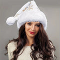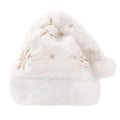 Fuzzy White Snowflake Christmas Hat – Golden Embroidered Holiday Costume