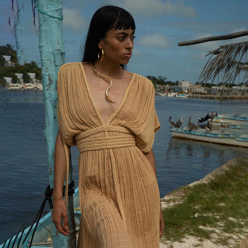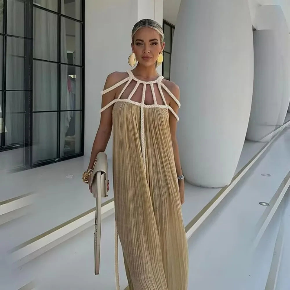 Green Boho Backless Beach Dress – Split Summer Maxi