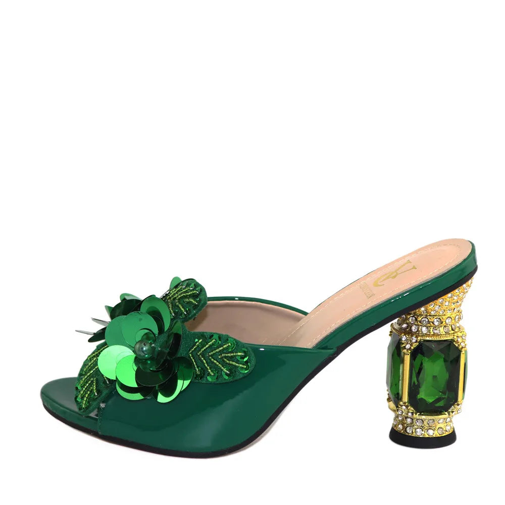 Green Rhinestone African Pumps – Elegant Wedding High Heels