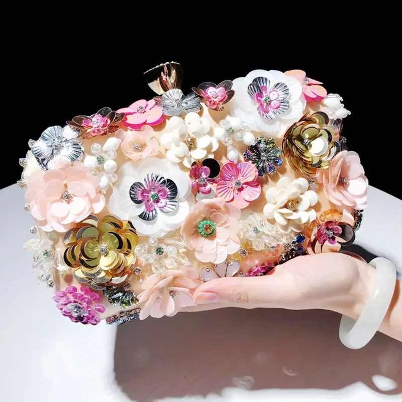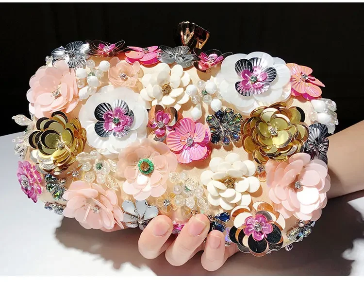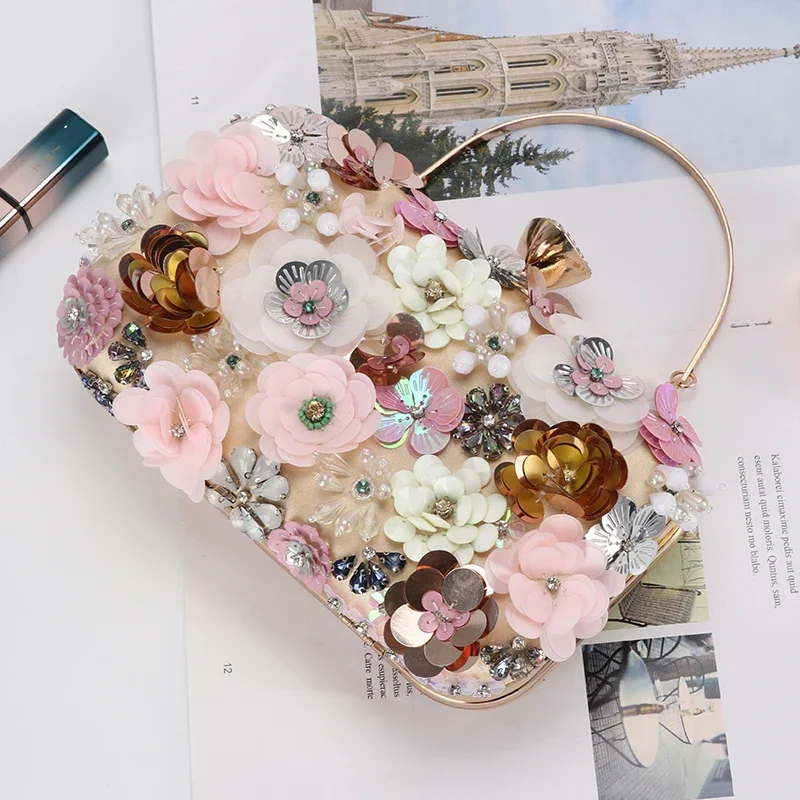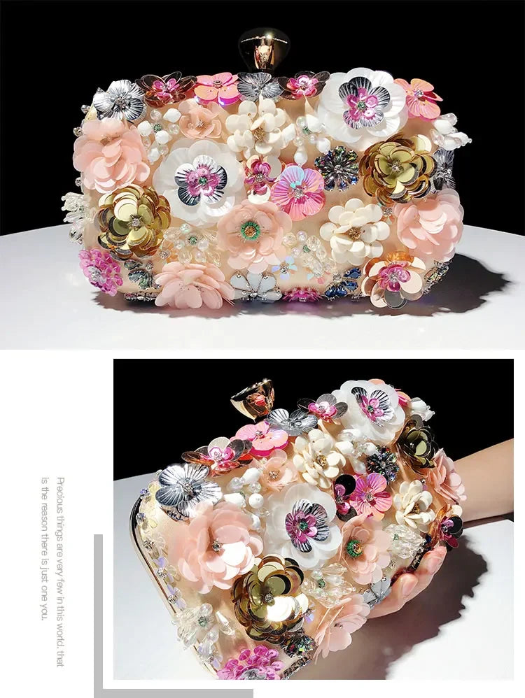 Luxury Women's Floral Evening Clutch New Fairy 3D Appliques Wedding Party Purses Elegant Ladies Beading Bags Bride Handbag
