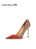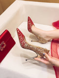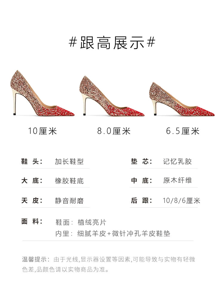 Luxury Women's Glitter Red High Heels Pointed Toe Designer Pumps Super High 8cm Heel True to Size Wedding Bridal Valentine Ladies Shoes