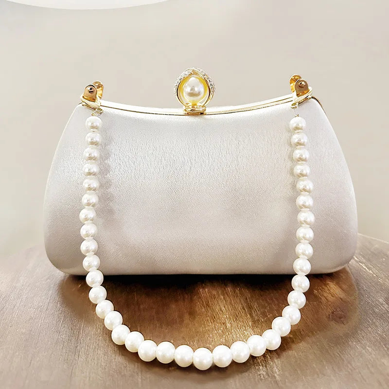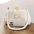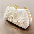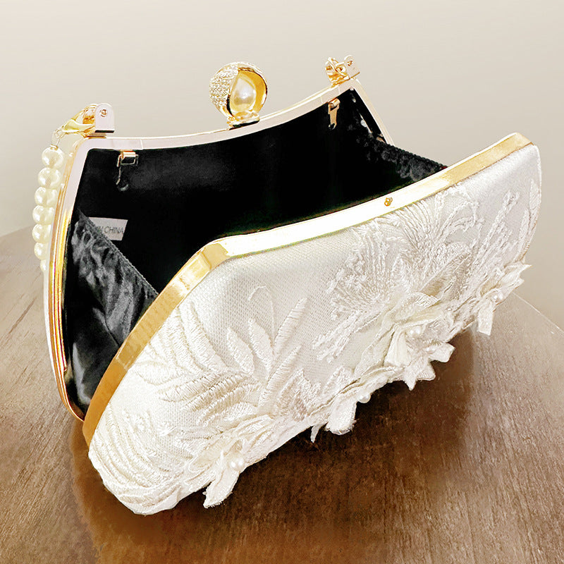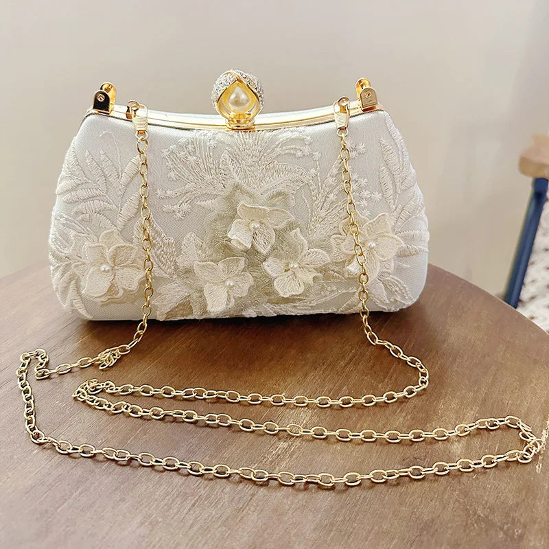 Pearl Chain Handbags Female White Embroidered Cheongsam Dress Clutch Purse Luxury Evening Bags Over Shoulder Party Wedding Prom