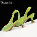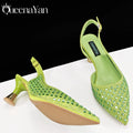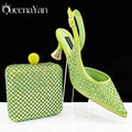 Queena Yan Italian-Inspired Green Crystal Heels with Matching Clutch Set