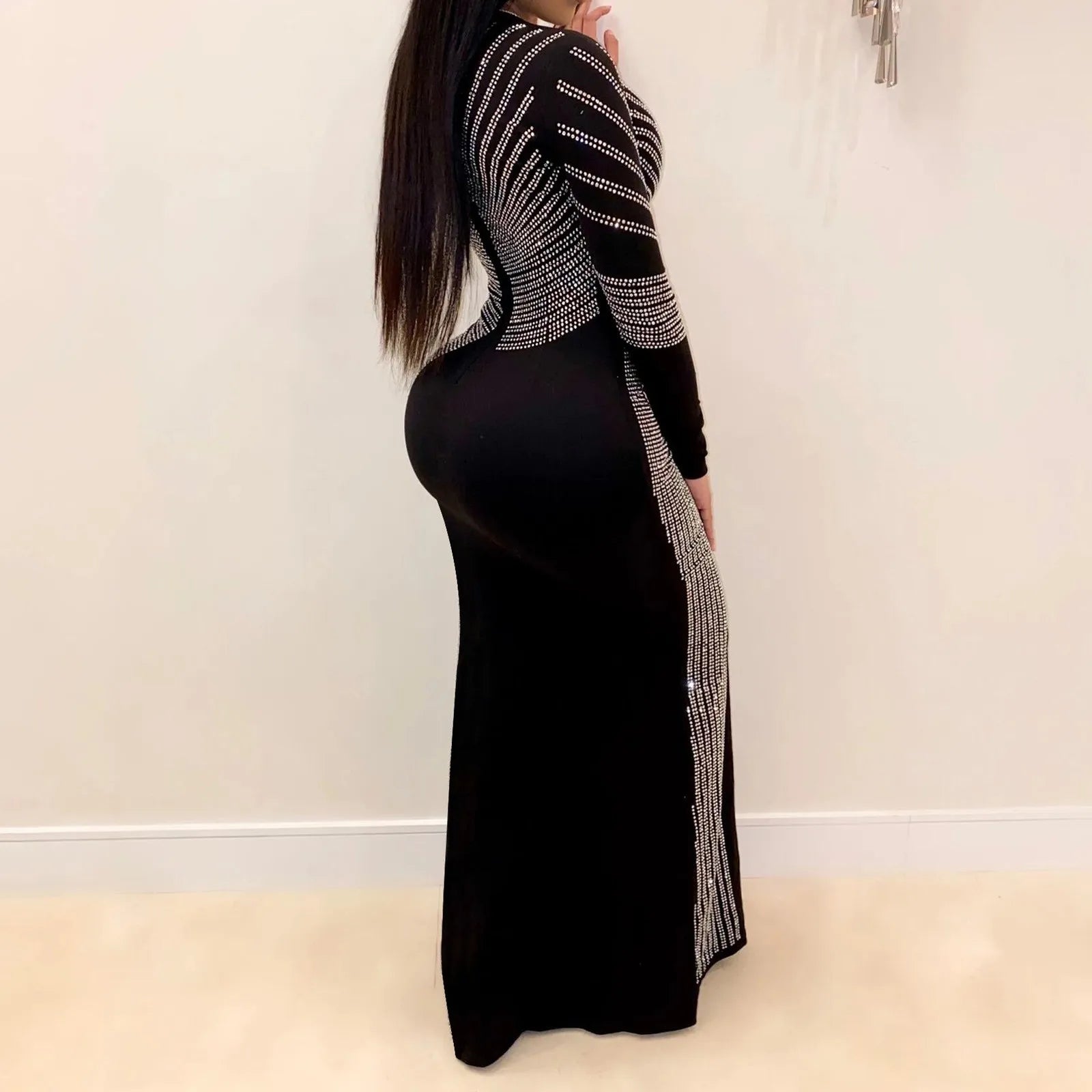 Rhinestone Glitter Floor Length Split Dress Female Sequined Maxi Dress