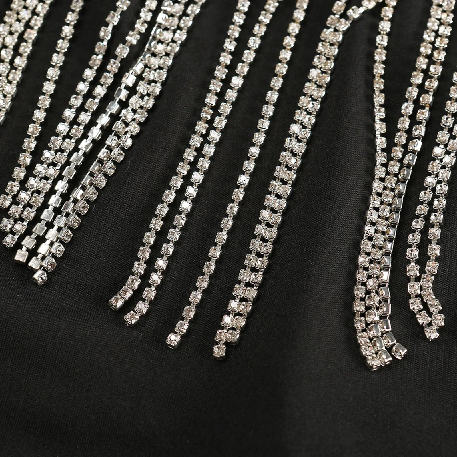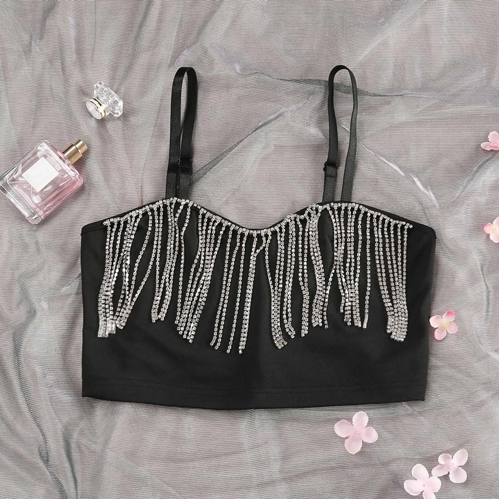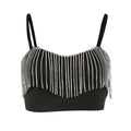 Splicing Bright Diamond Tassel Wrapped Chest Crop Top Suspenders