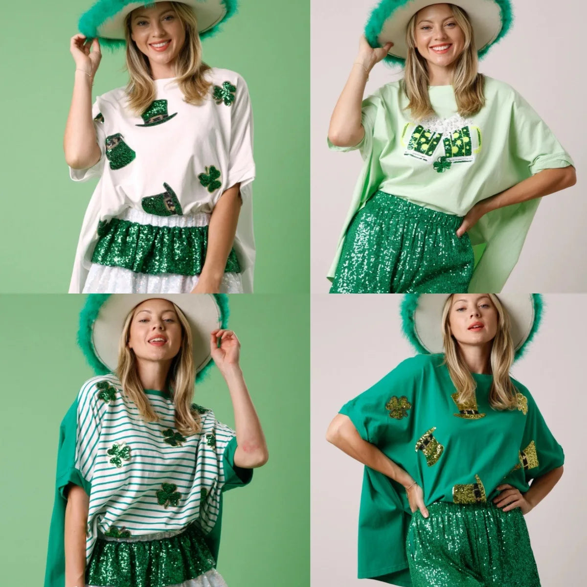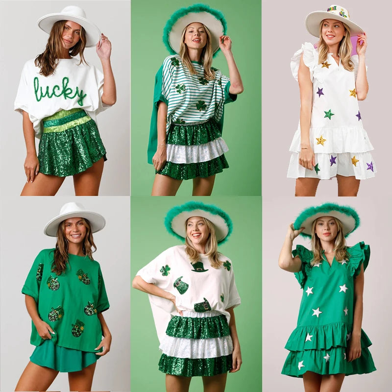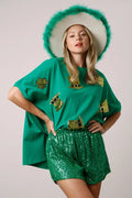 St Patrick's Costume Lucky Letter Clover Green Short Sleeve Top Clother