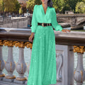 Women’s Deep V Neck Sequin Jumpsuit – Slim Belt Wide-Leg Elegant Party Outfit