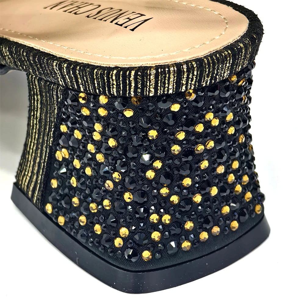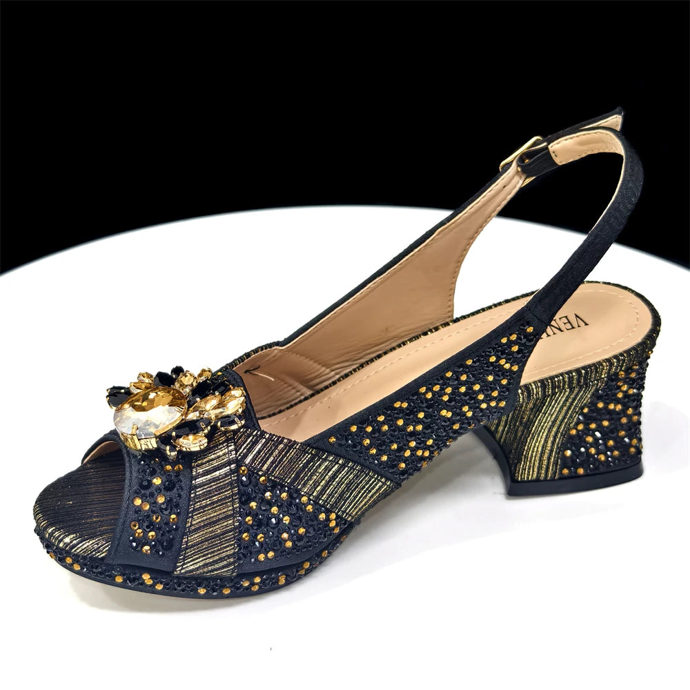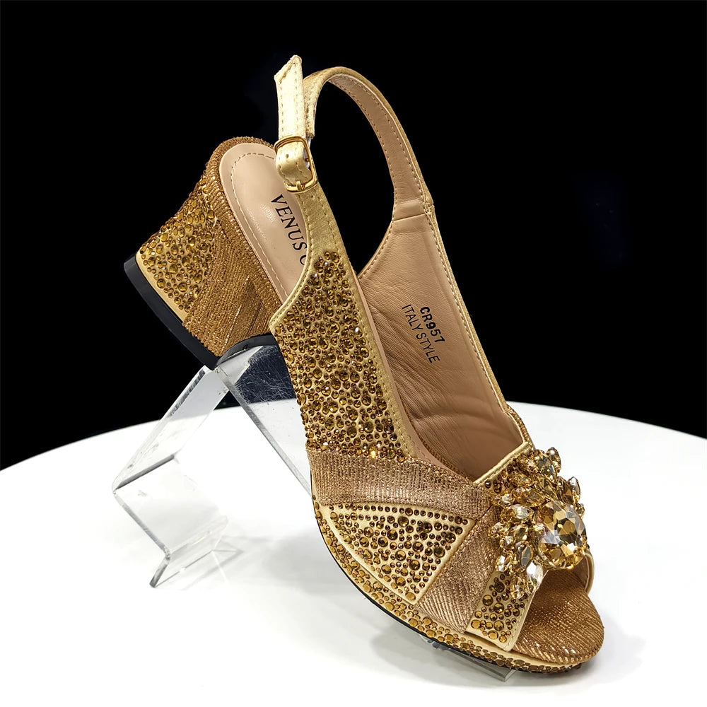Women’s Gold Peep-Toe Heels & Bag Set 2025 – Venus Chan Italian Diamond Party Pumps