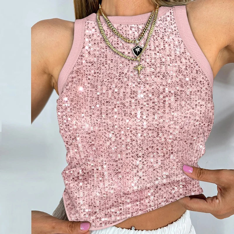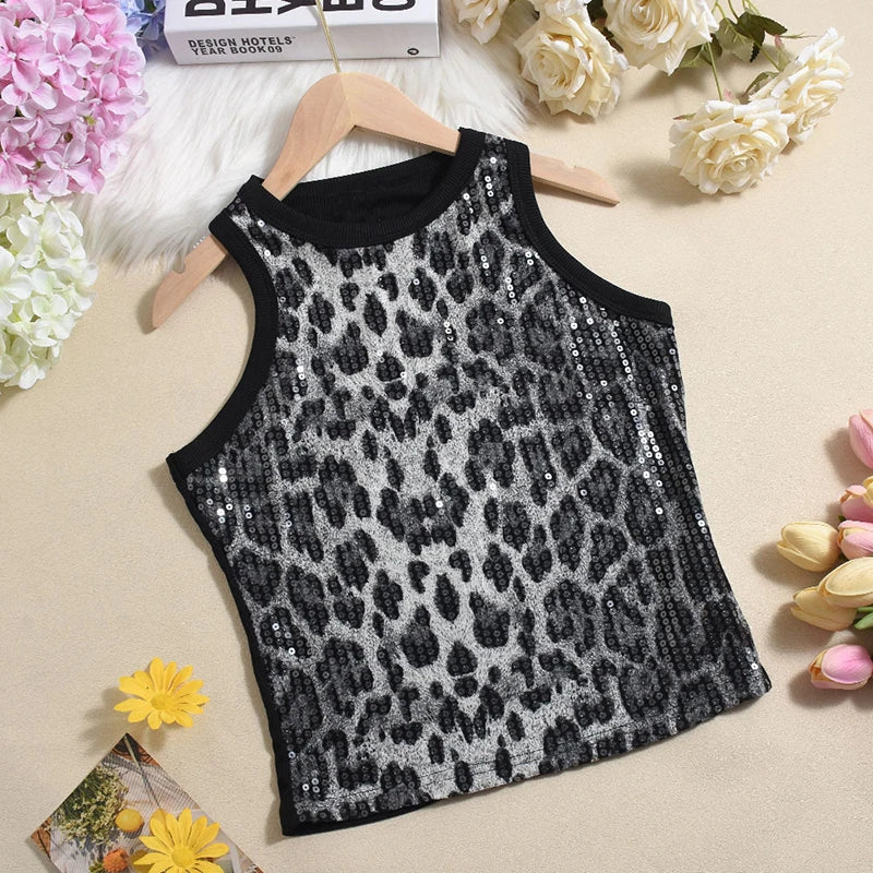 Women’s Harajuku Leopard Sequin Vest – Sleeveless Pullover Streetwear Top