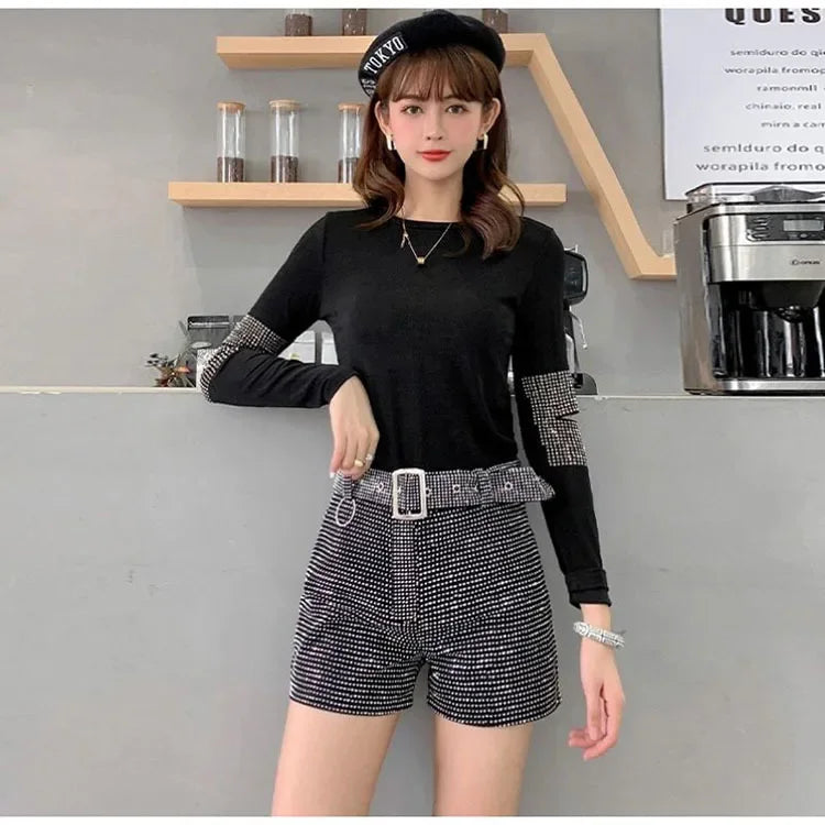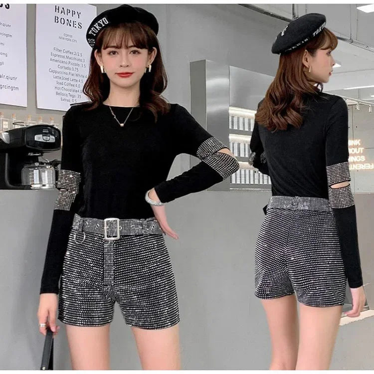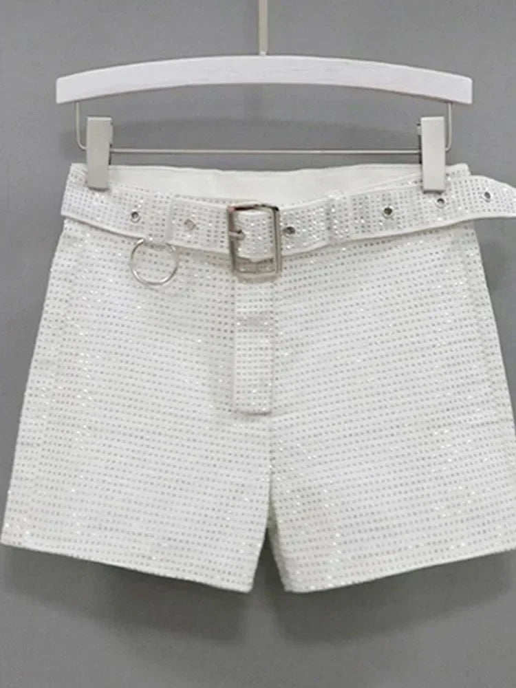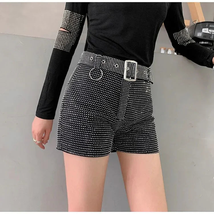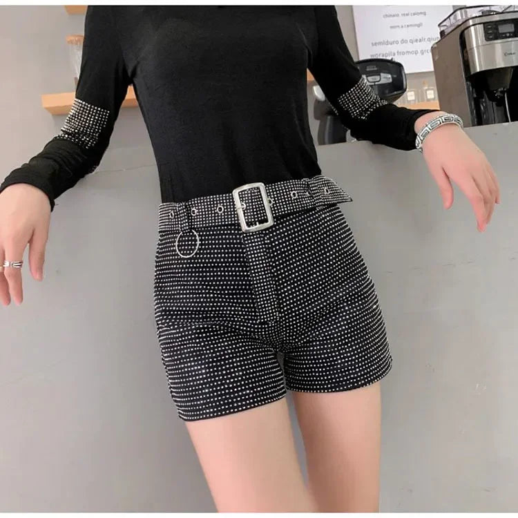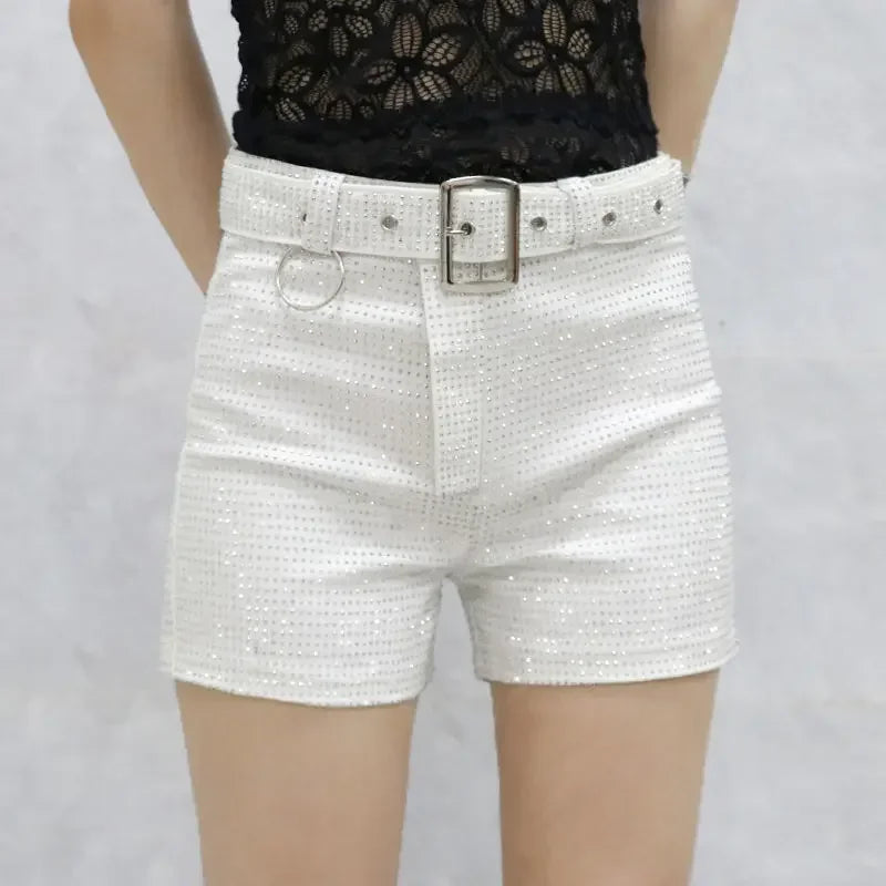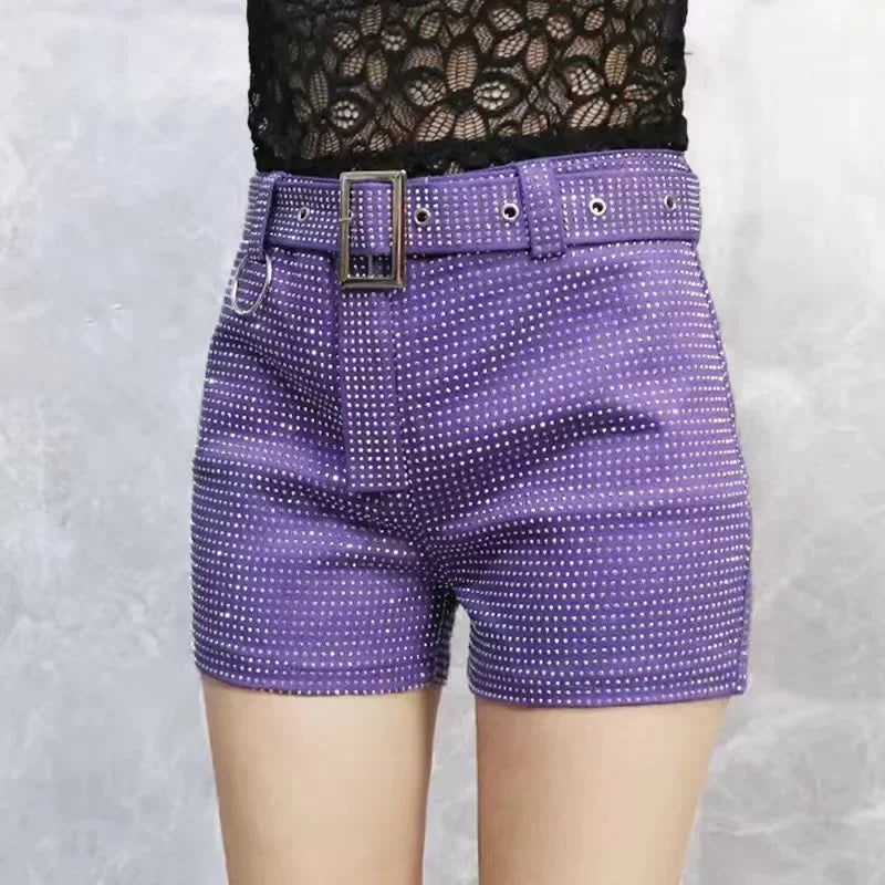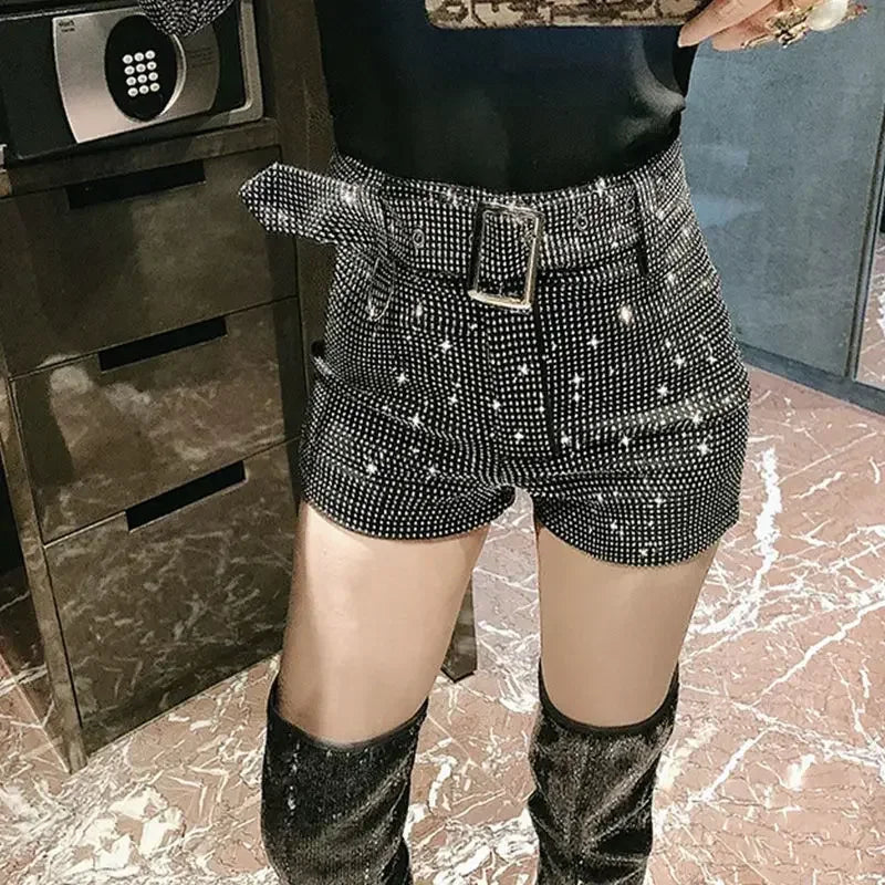 Women’s Rhinestone Shorts 2025 – High Waist Wide Leg Sexy Diamond Hot Pants