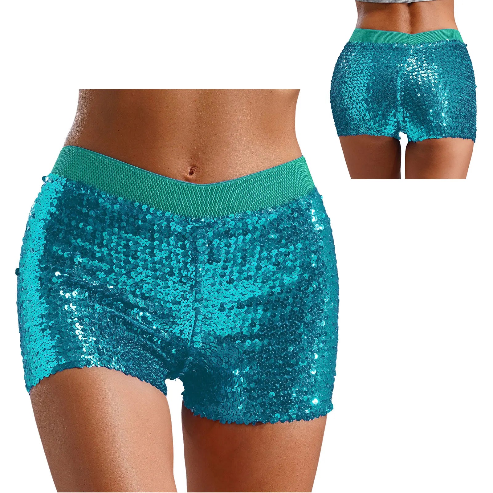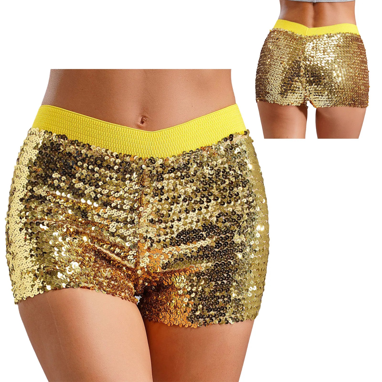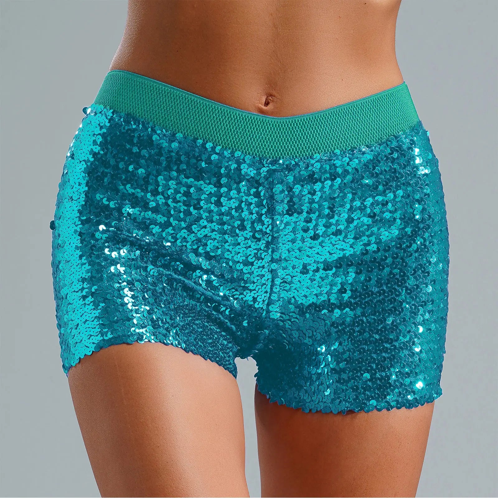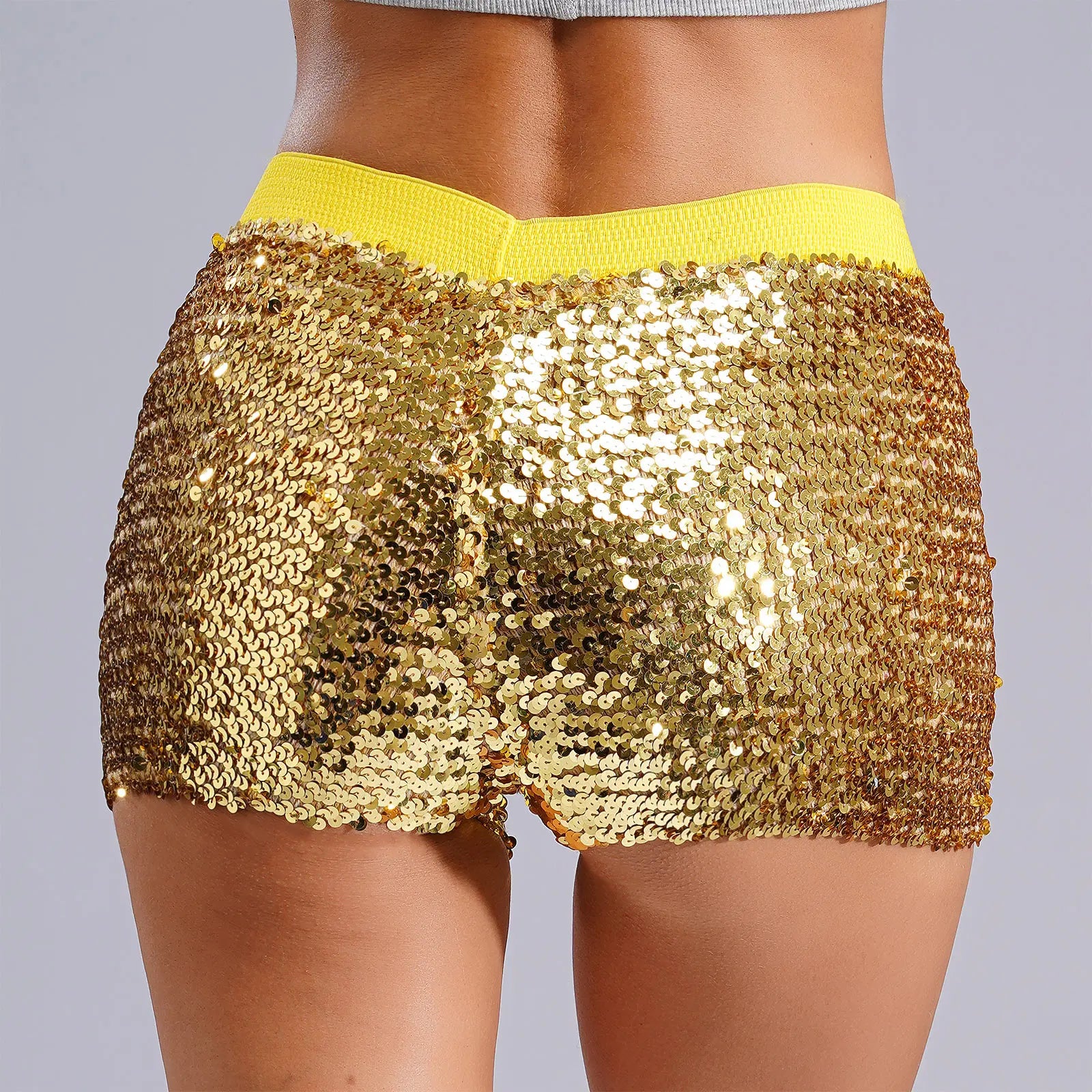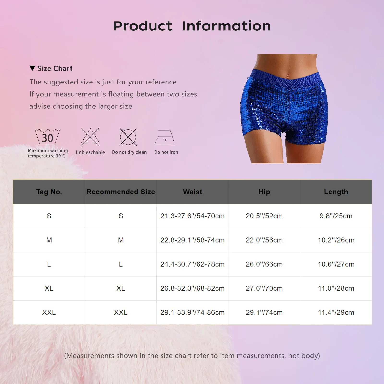 All over with glitter sequins, you will be dazzling and stunning in the crowd. Straight leg shorts show off your leg length.
