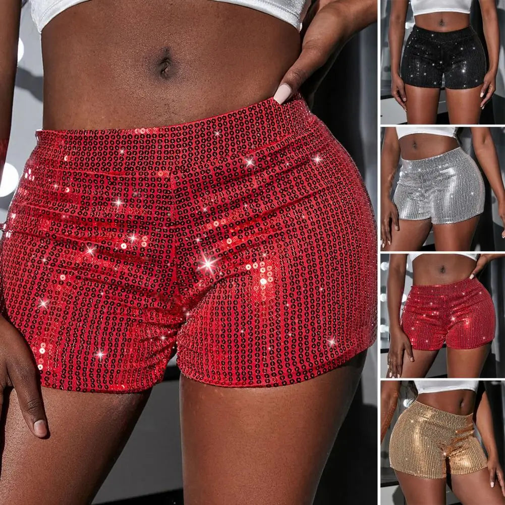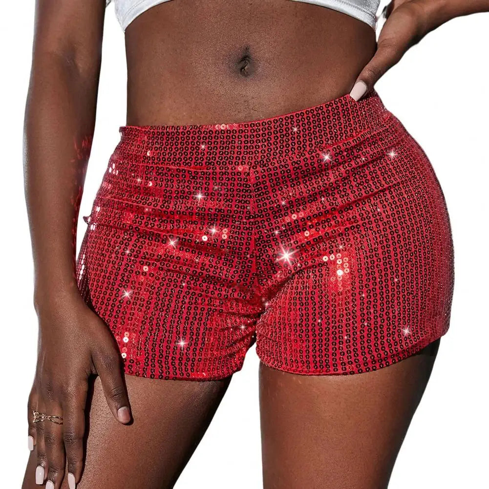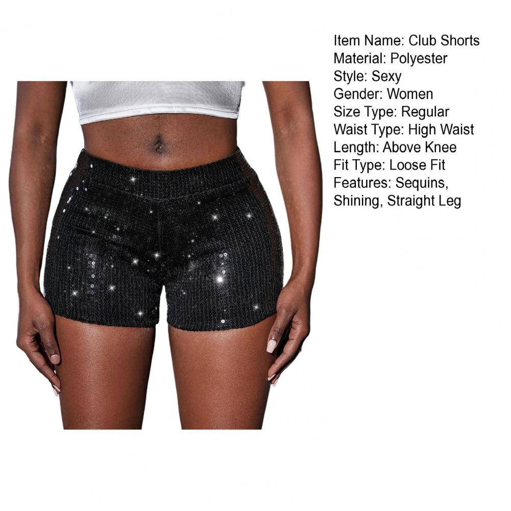 Women’s Sequin Straight Leg Shorts – High Waist Glitter Party & Clubwear Pants