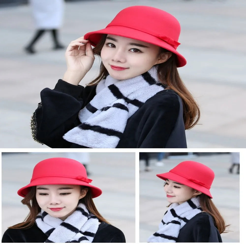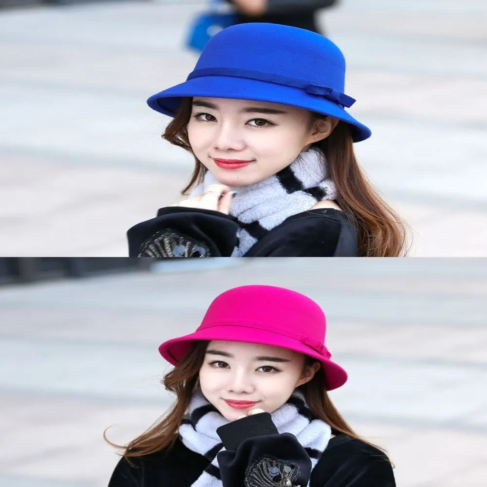 Women’s Vintage Wool Fedora Bowler Hat – Elegant Autumn Winter Warm Cloche Bucket Cap