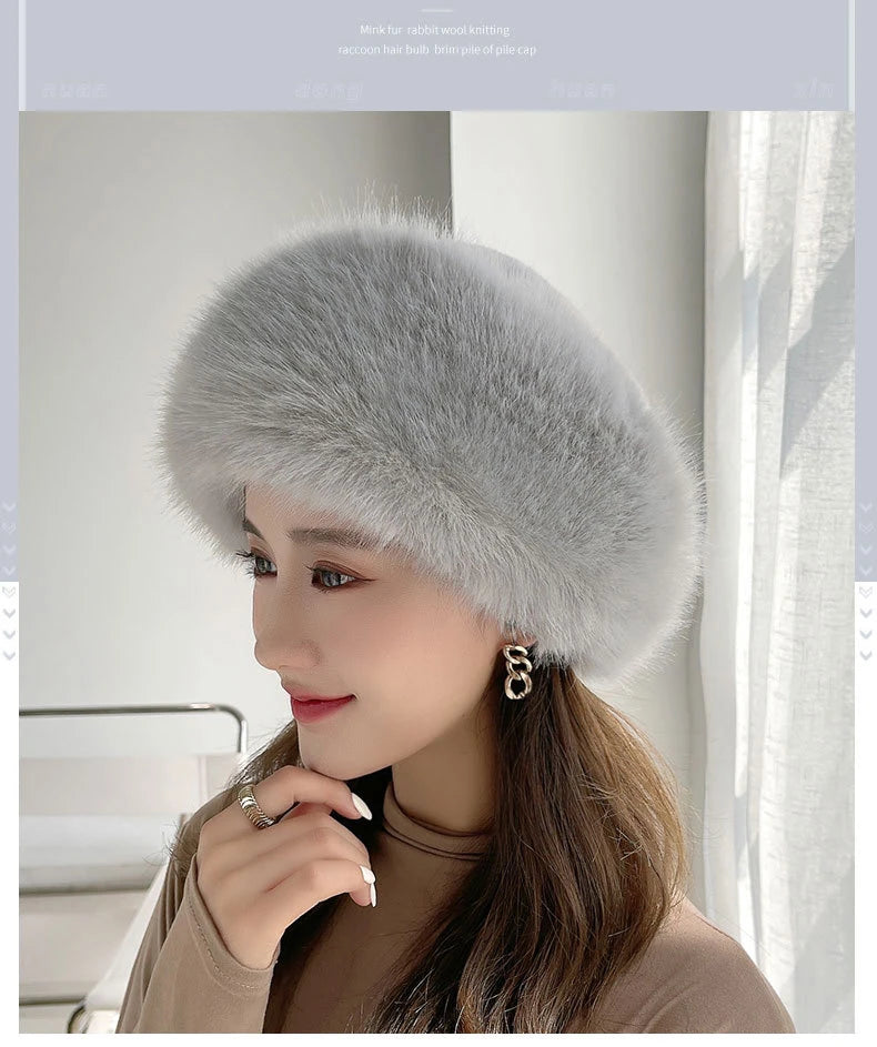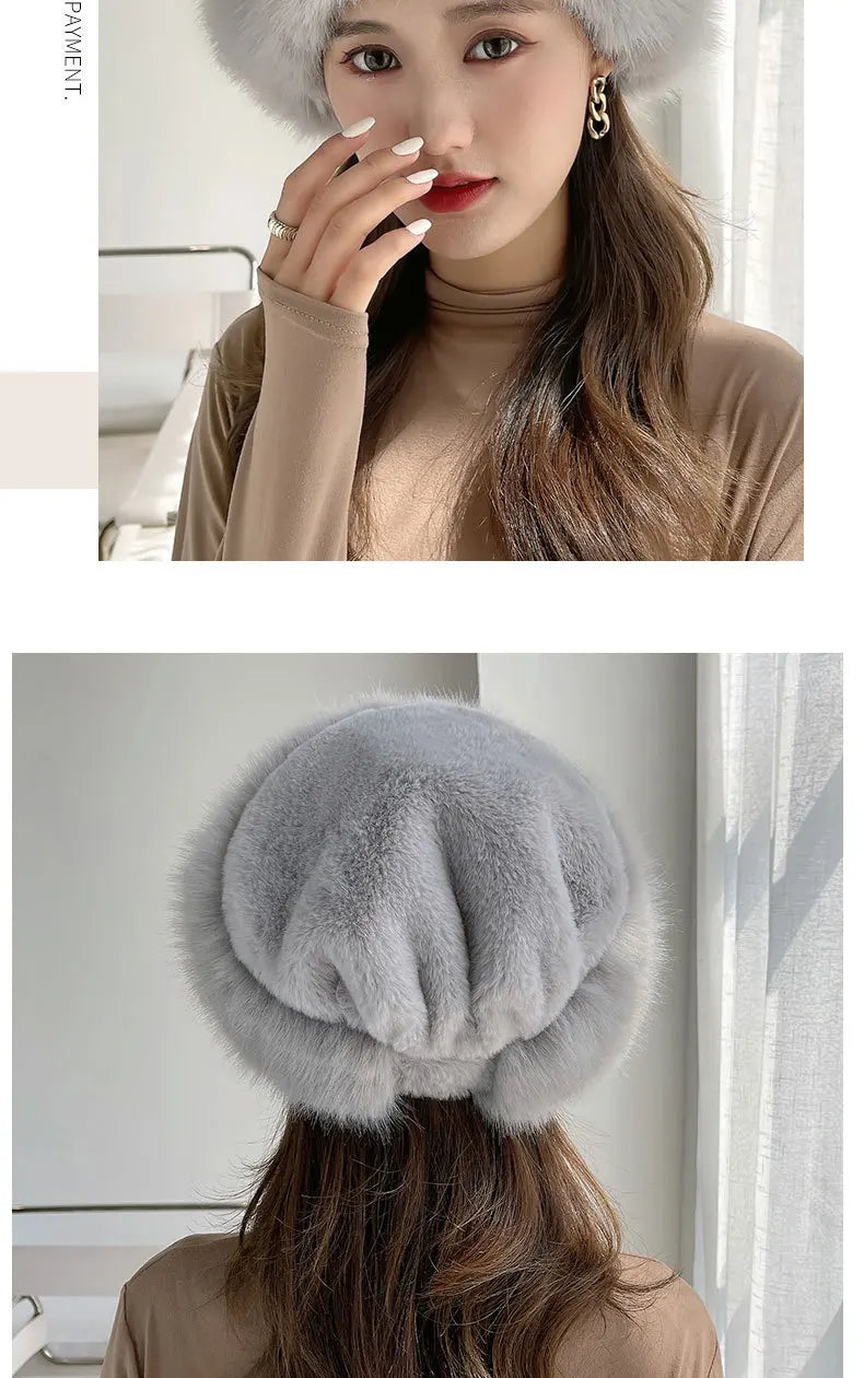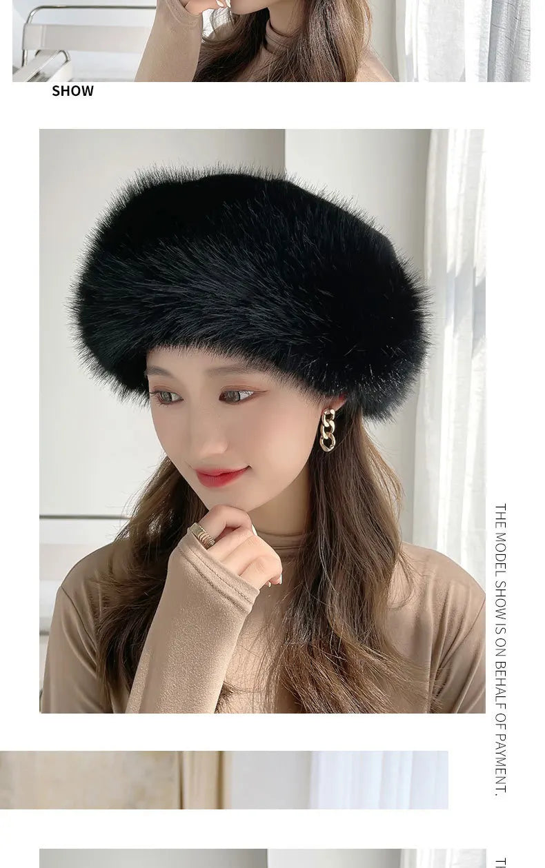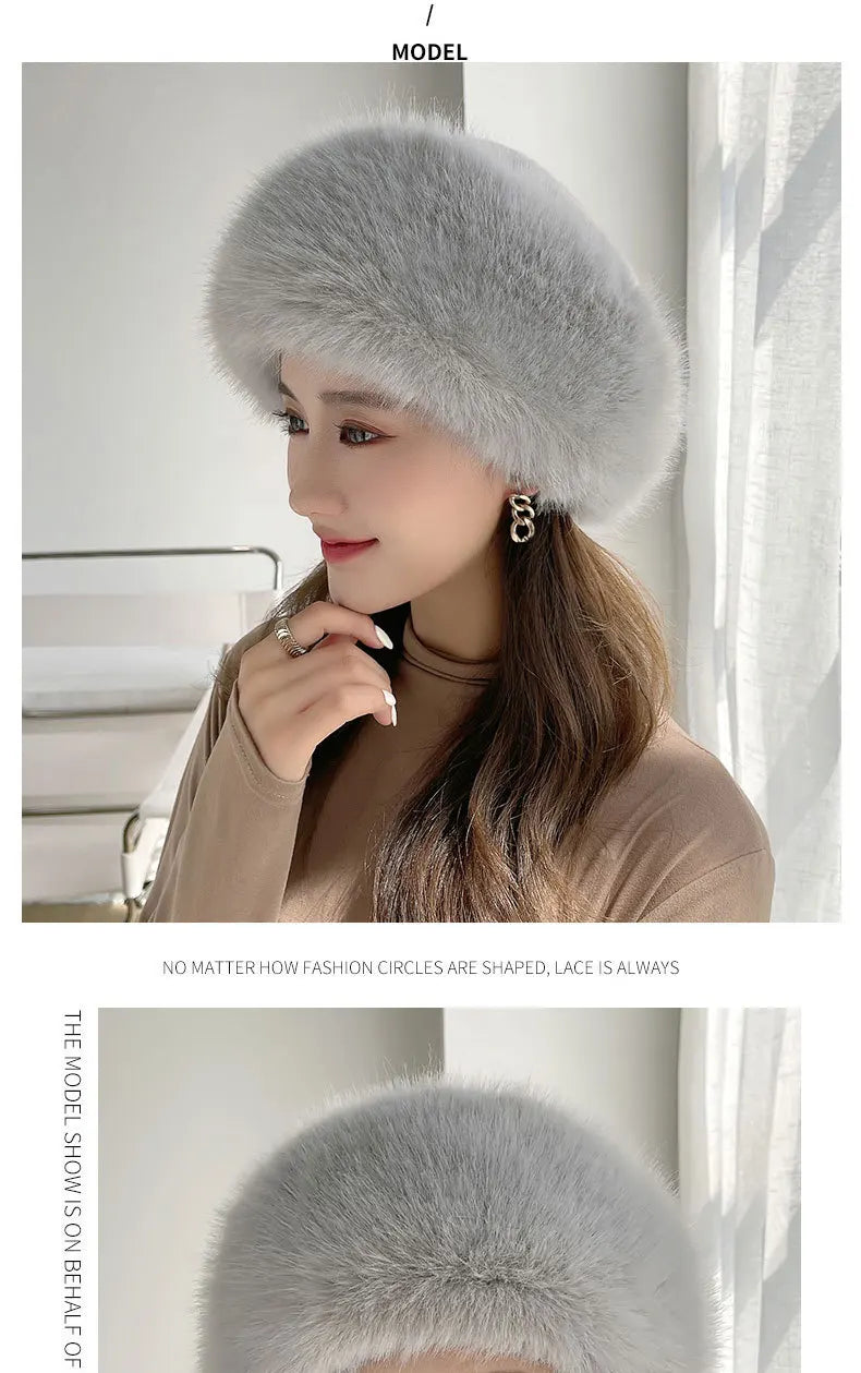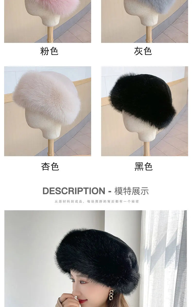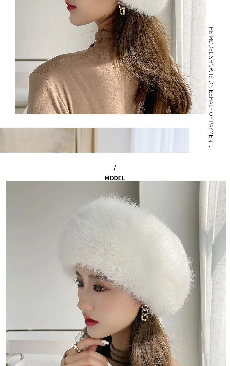 Women’s Winter Faux Fur Fox Hat – Thick Warm Beret with Ear Protection, Mongolian Princess Style