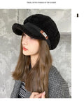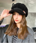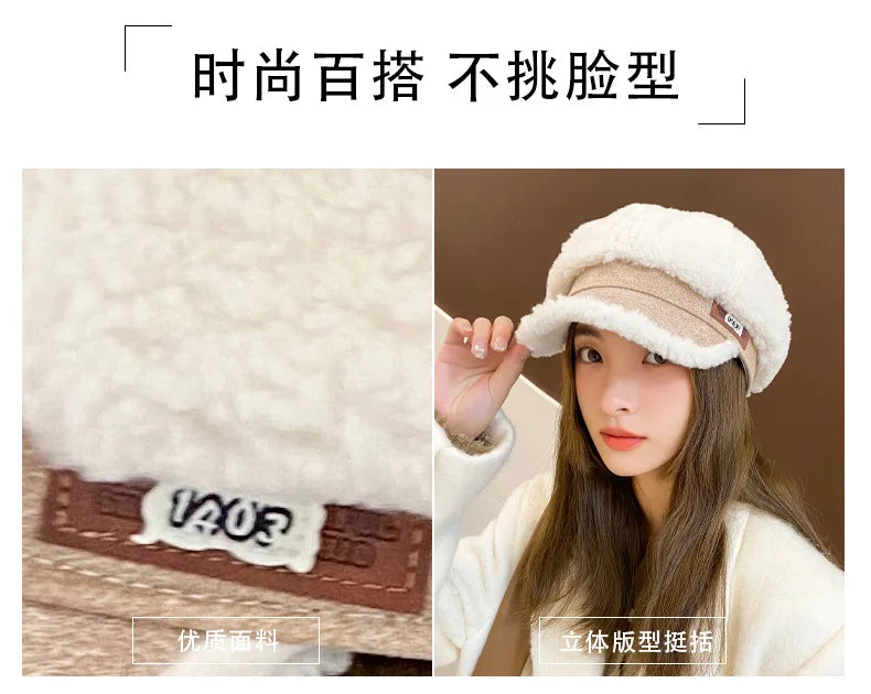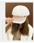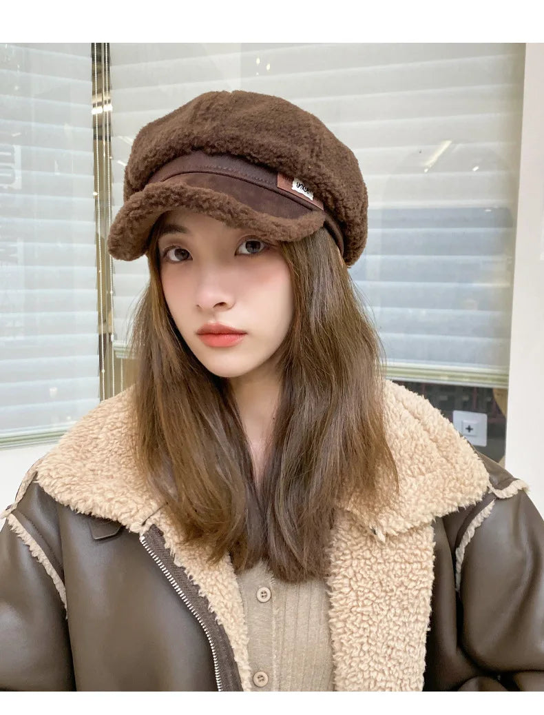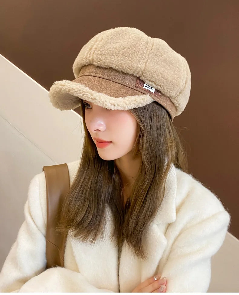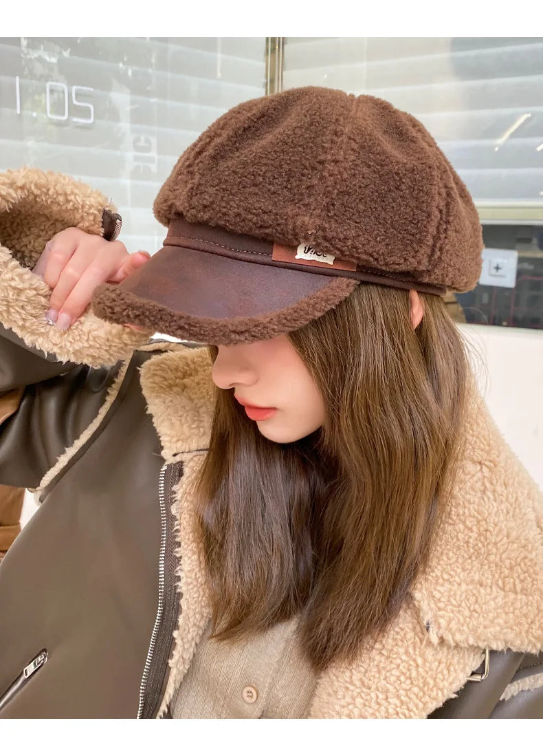 Women’s Winter Octagon Beret – Faux Shearling Thermal Hat, Korean Fashion Adjustable Outdoor Headwear