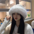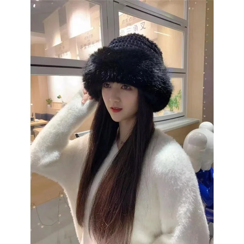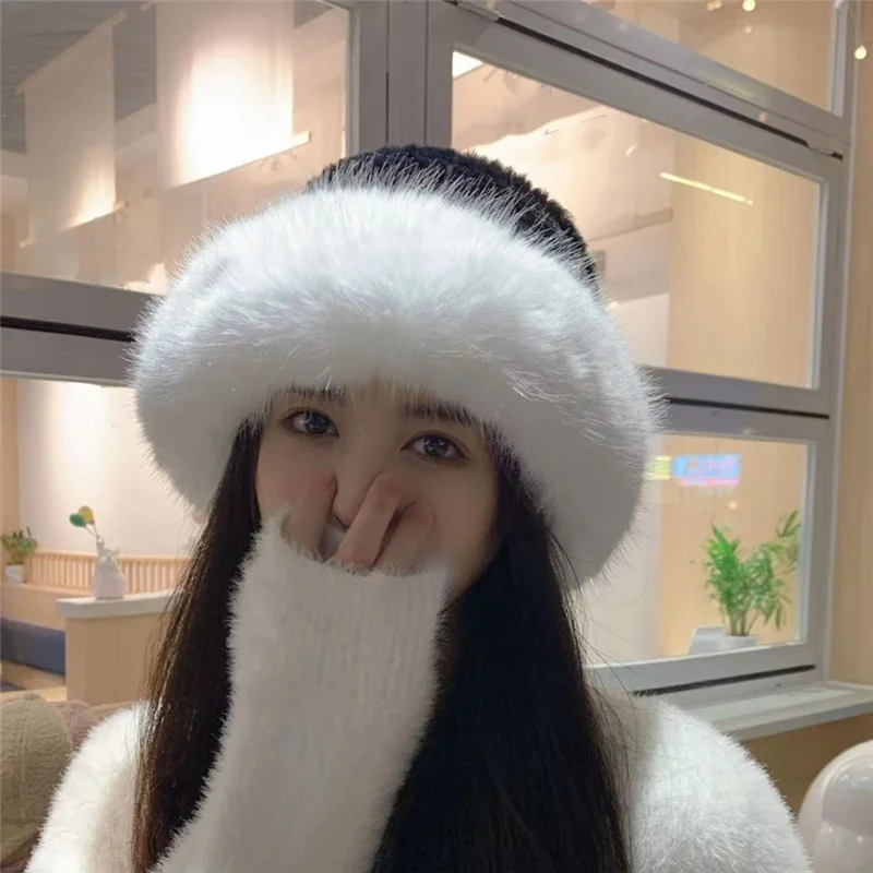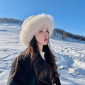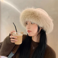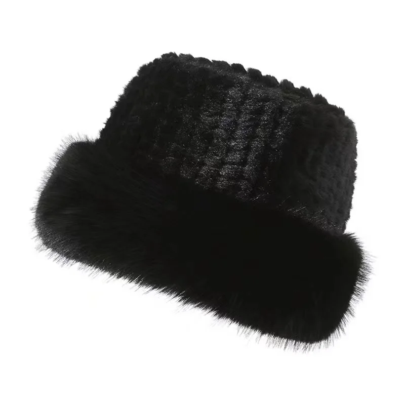 Women’s Winter Plush Bucket Hat – Stylish Warm Black Cap for Cold Weather