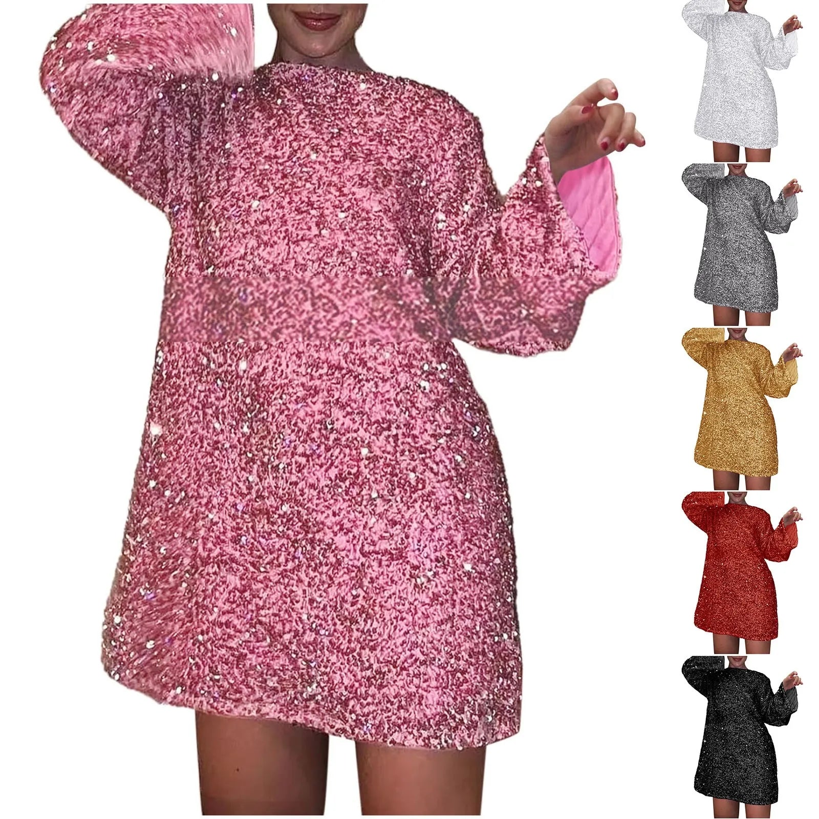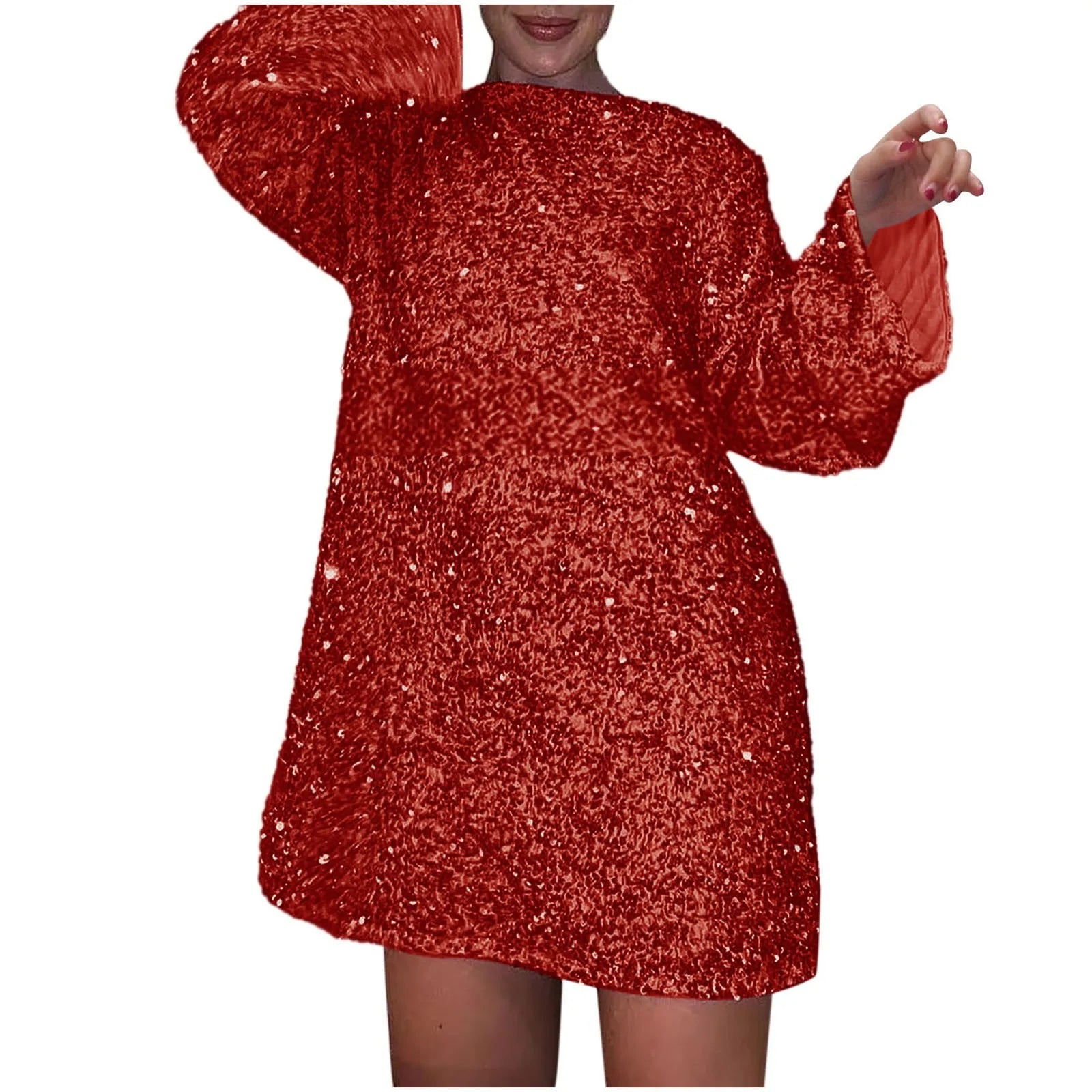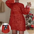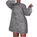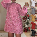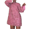 Women's Autumn and Winter New Round Neck Long Sleeved Loose Oversized Sexy Sequin Short Dress