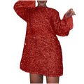Women's Autumn And Winter New Round Neck Long Sleeved Loose Oversized Sexy Sequin Short Dress